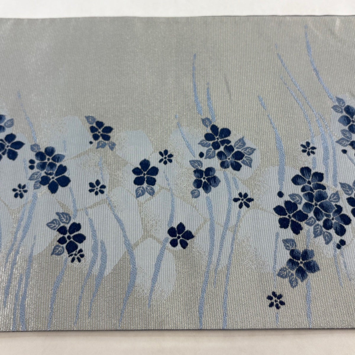 名古屋帯 逸品 辻村ジュサブロー 落款あり 桜 雪輪 灰色 正絹