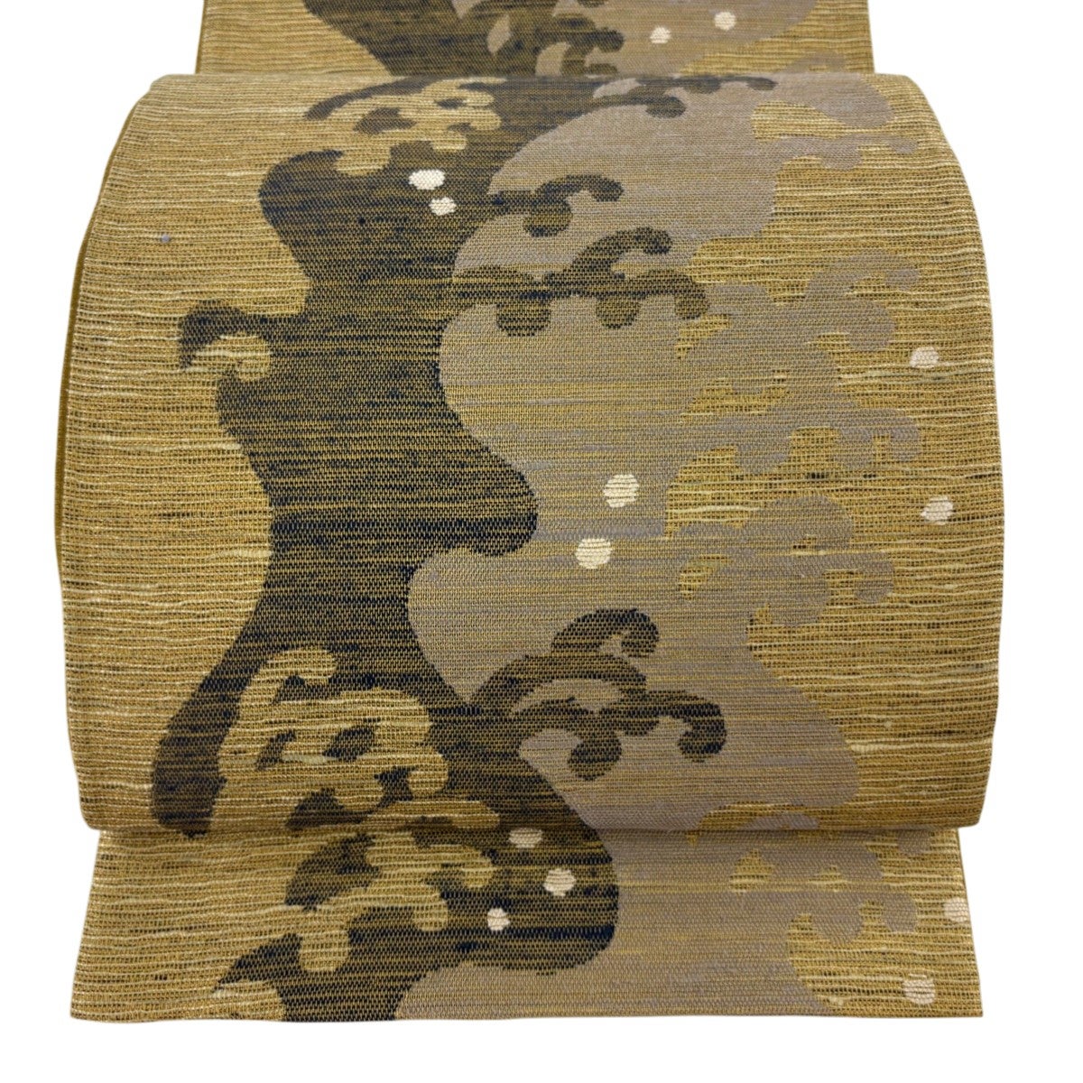 名古屋帯 名品 紬地 菱 黄土色 正絹