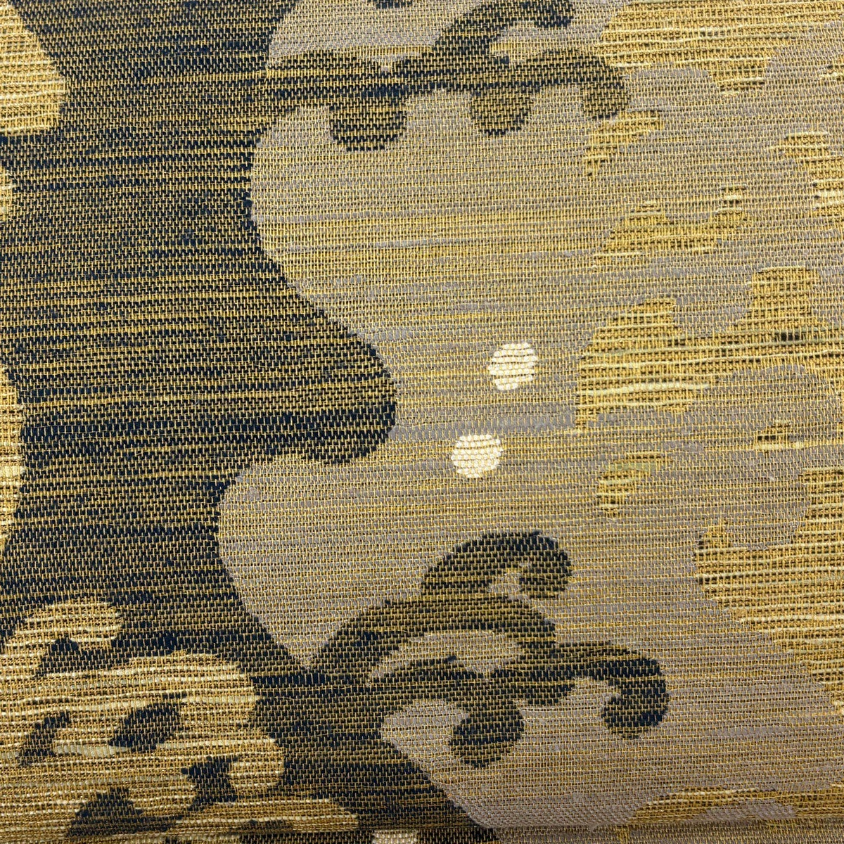 【美品】 袋帯 逸品 落款あり 上島洋山 能州紬 幾何学 縞 金銀糸 ベージュ お太鼓柄 正絹