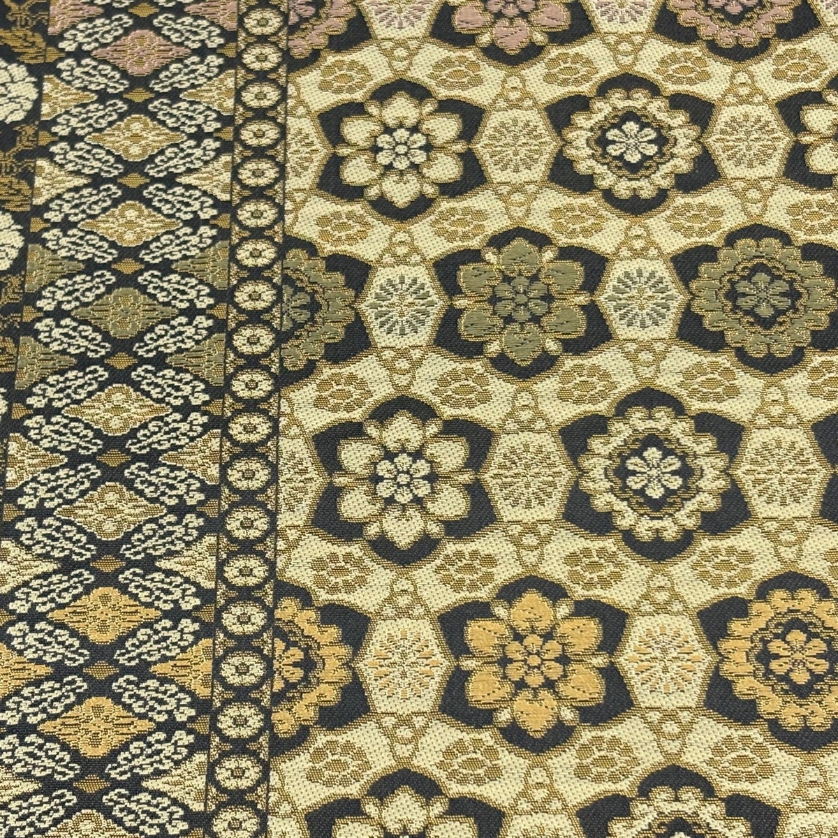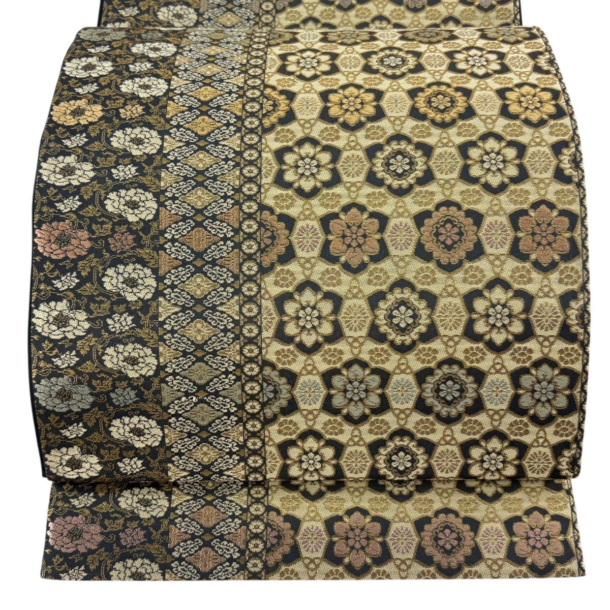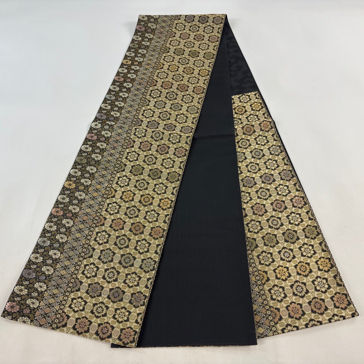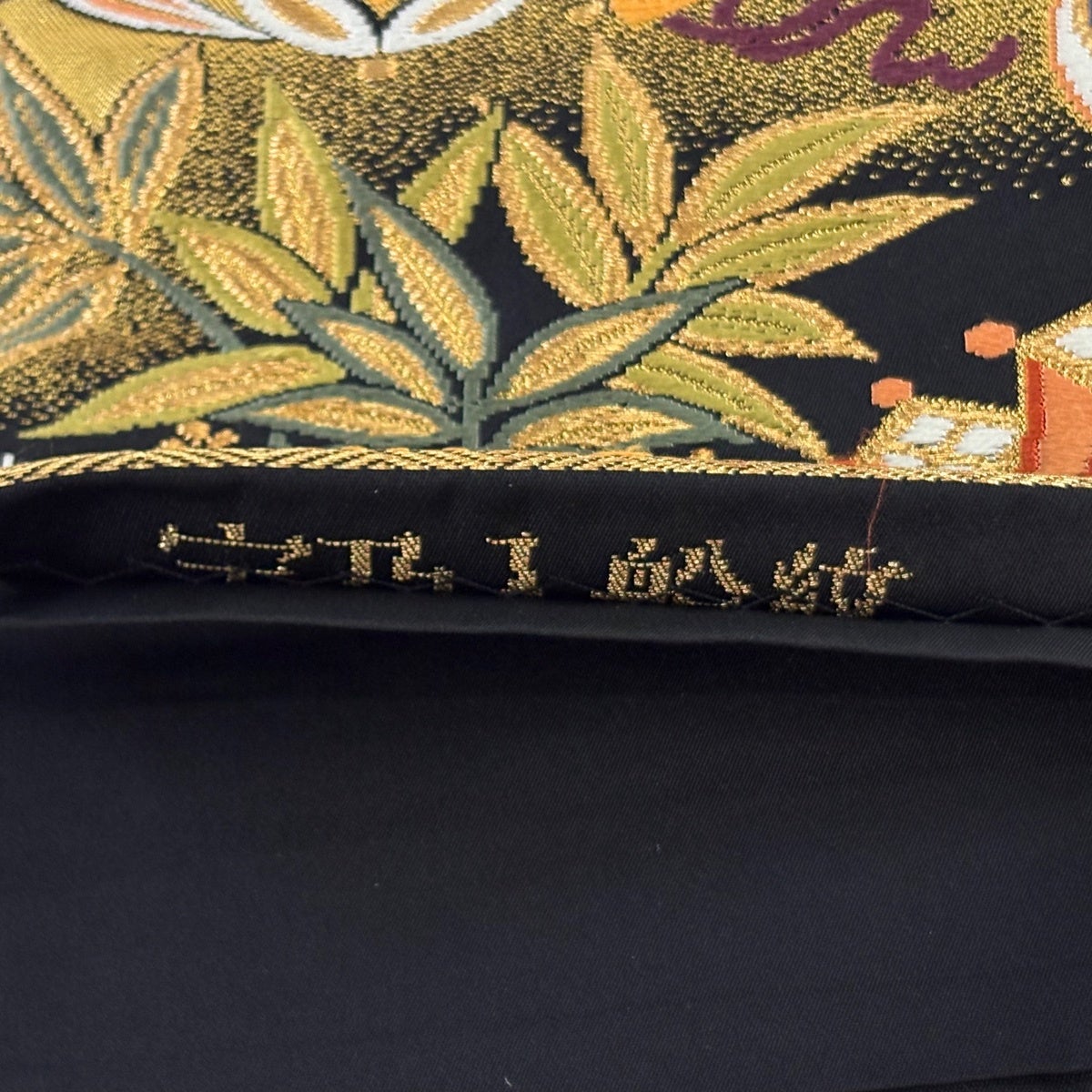 【美品】 袋帯 逸品 落款あり 証紙あり 小森草木染工房 慶長宝尽し 市松 金糸 黒 全通 正絹