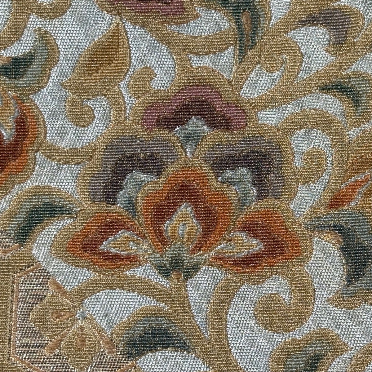 名古屋帯 優品 御所つづれ 道長取り 草花 灰色 正絹