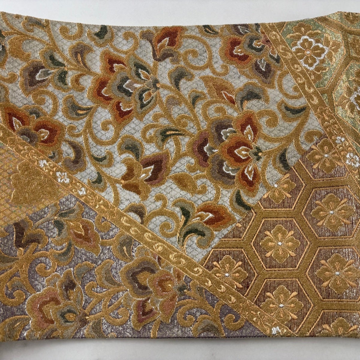 名古屋帯 優品 幾何学模様 箔 灰紫 正絹