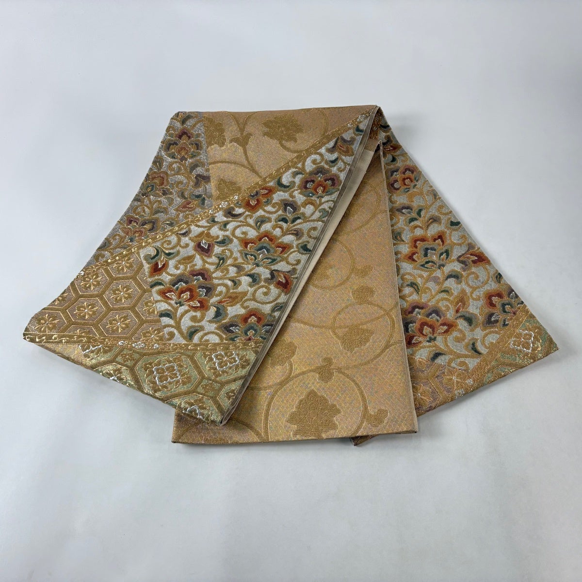 【美品】 名古屋帯 優品 花扇 金糸 箔 金色 正絹