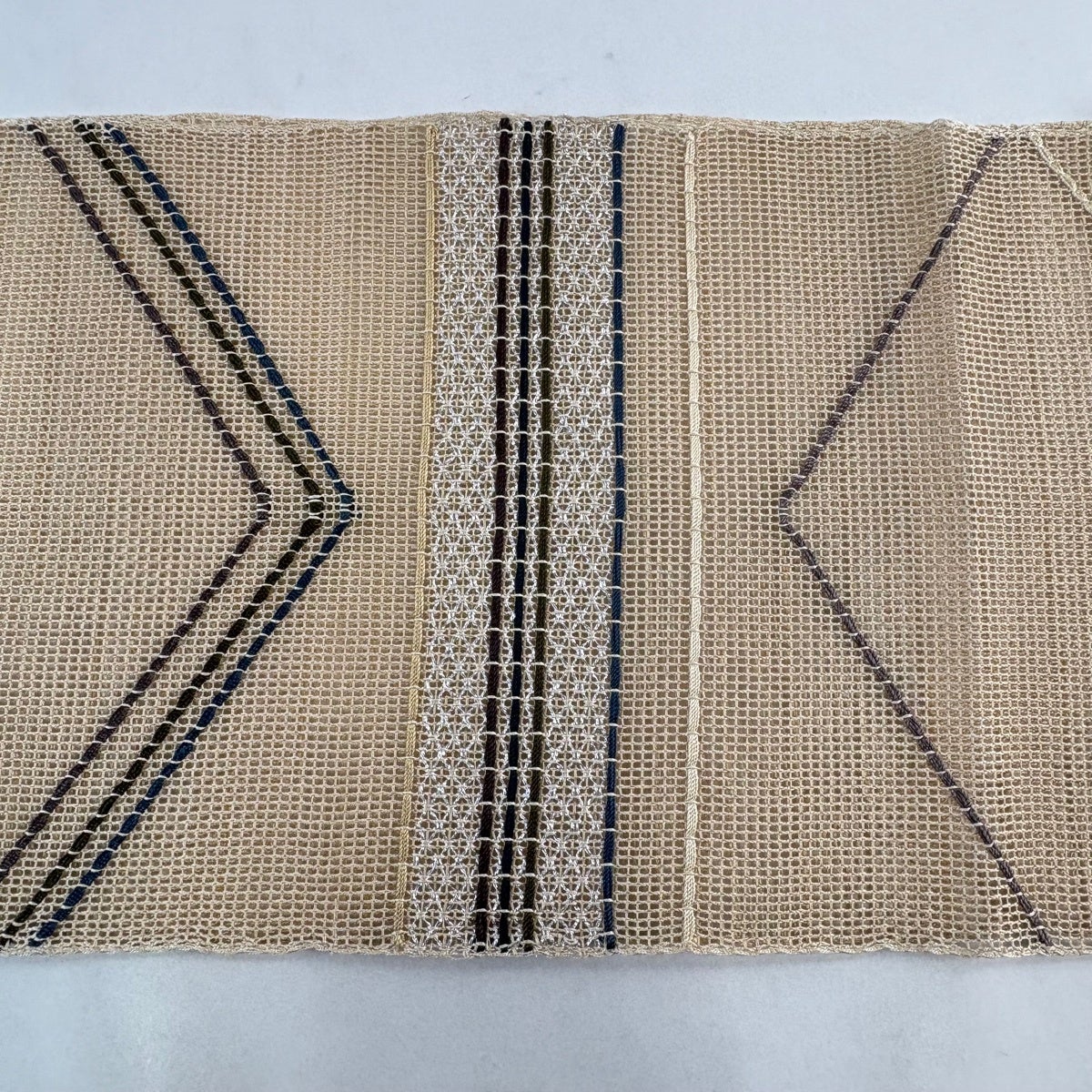 名古屋帯 名品 夏帯 絽 松葉仕立て 八寸名古屋帯 幾何学 金糸 クリーム 正絹