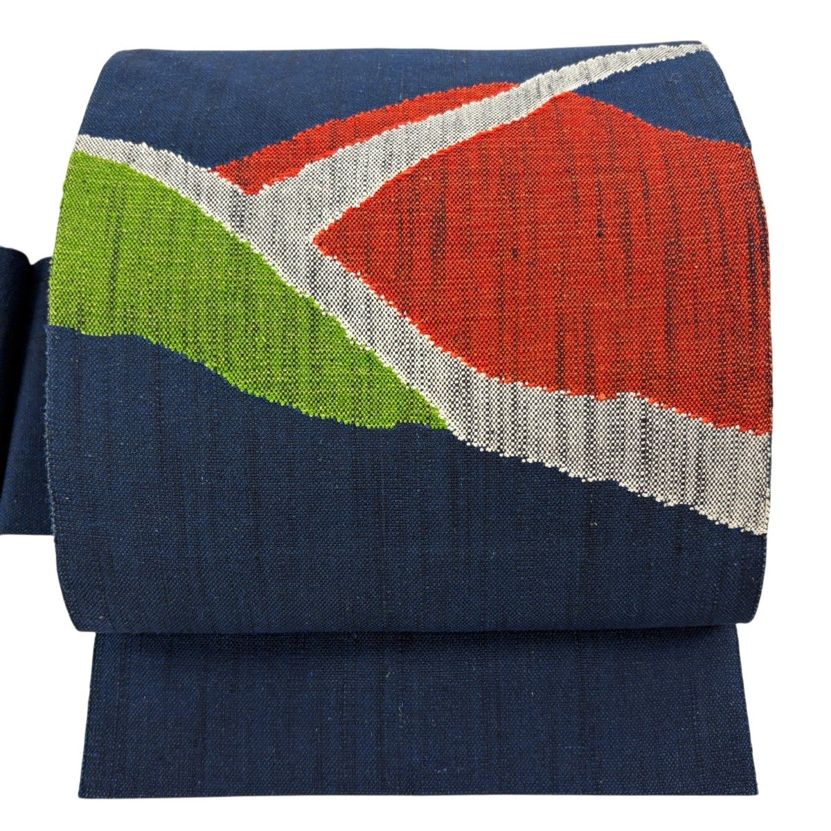名古屋帯 秀品 八寸名古屋帯 関西仕立て 縞 幾何学模様 オレンジ 正絹