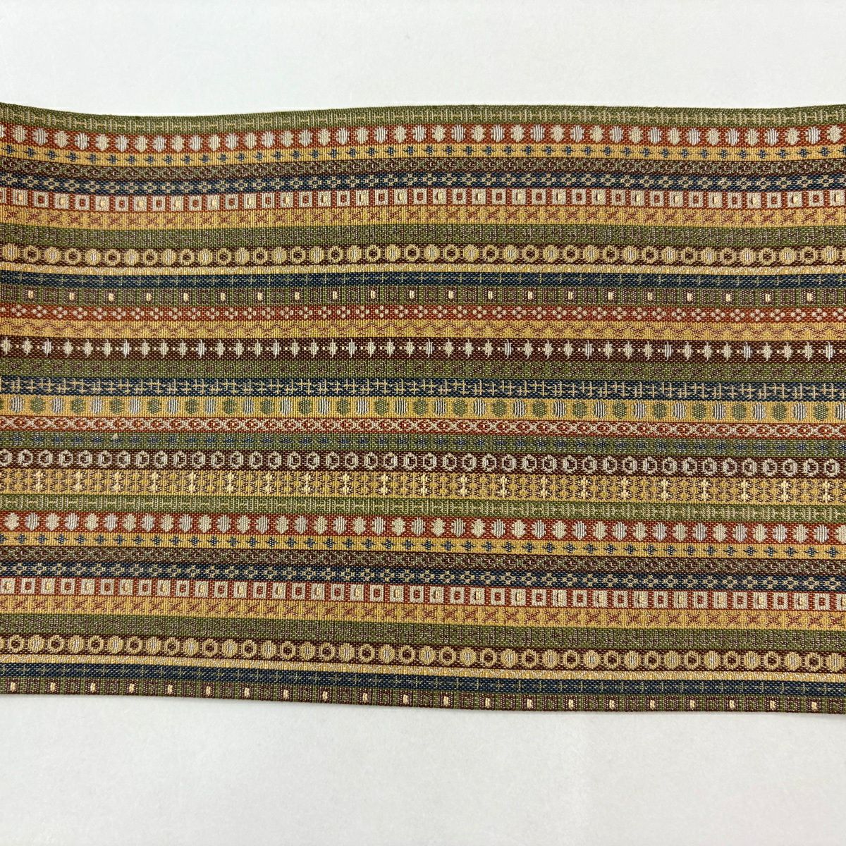 【在庫一掃】 半幅帯 名品 縞 山吹茶色 正絹