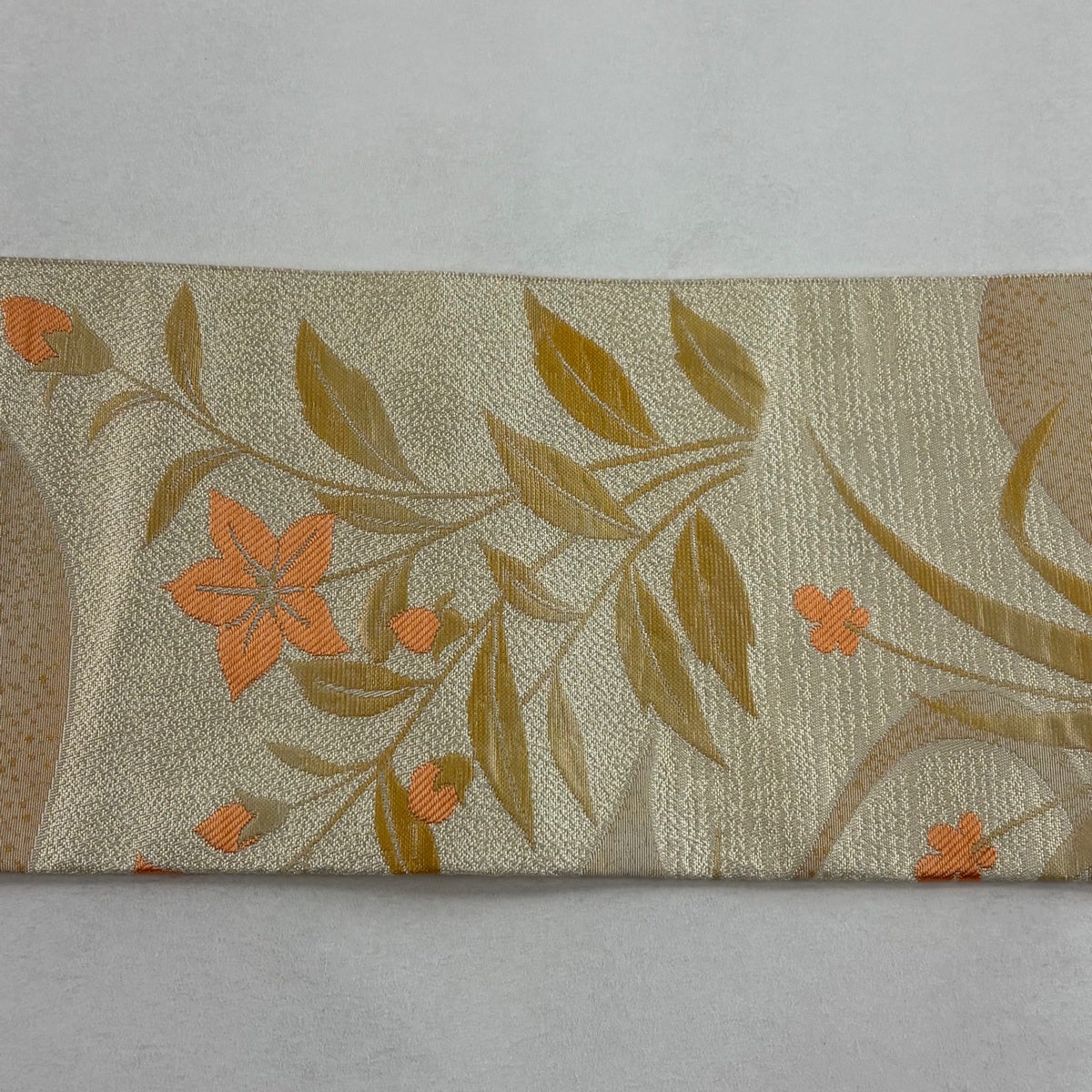 名古屋帯 優品 夏帯 絽 楓 流水 金糸 箔 オレンジ 正絹