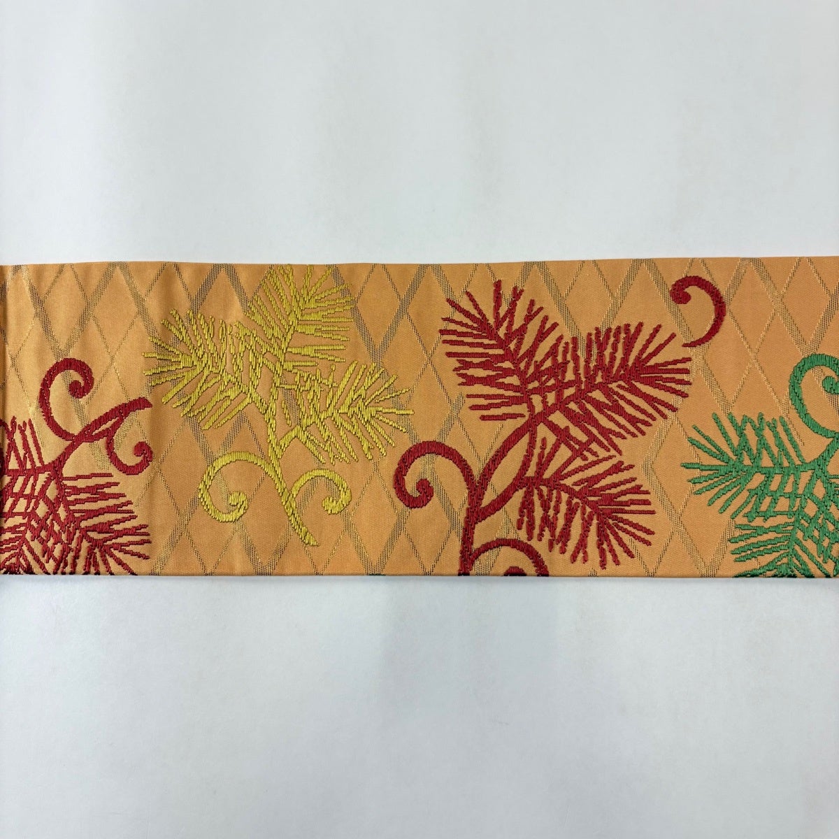 【美品】 名古屋帯 秀品 川島織物 落款あり 関西仕立て 若松 菱 箔 オレンジ 正絹