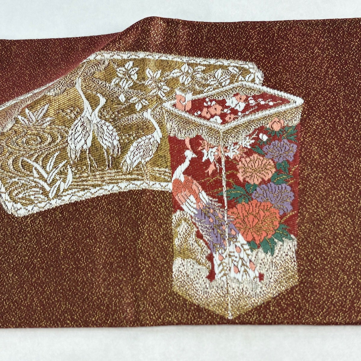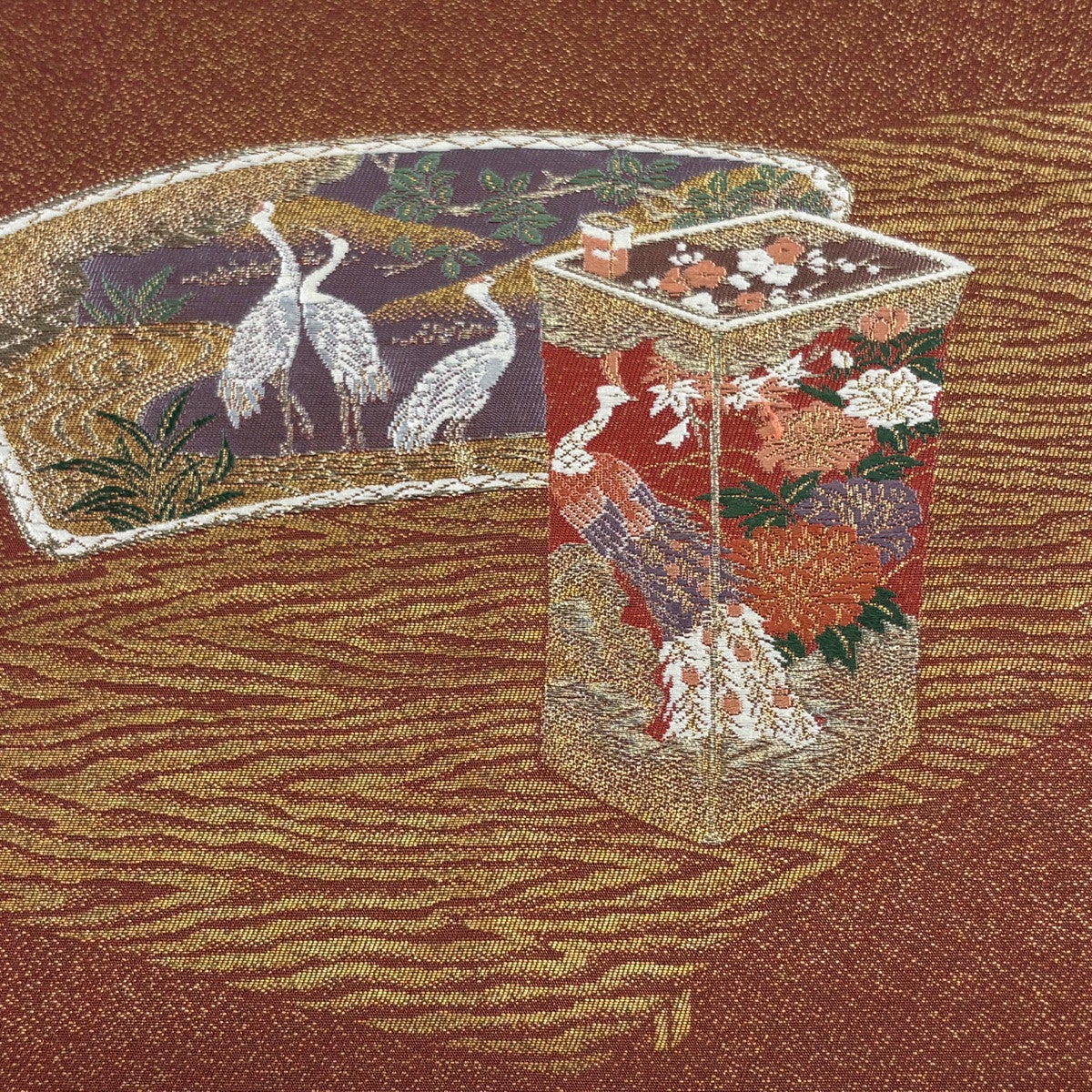 30%OFF 名古屋帯 秀品 落款あり 器物 クリーム 正絹 K30