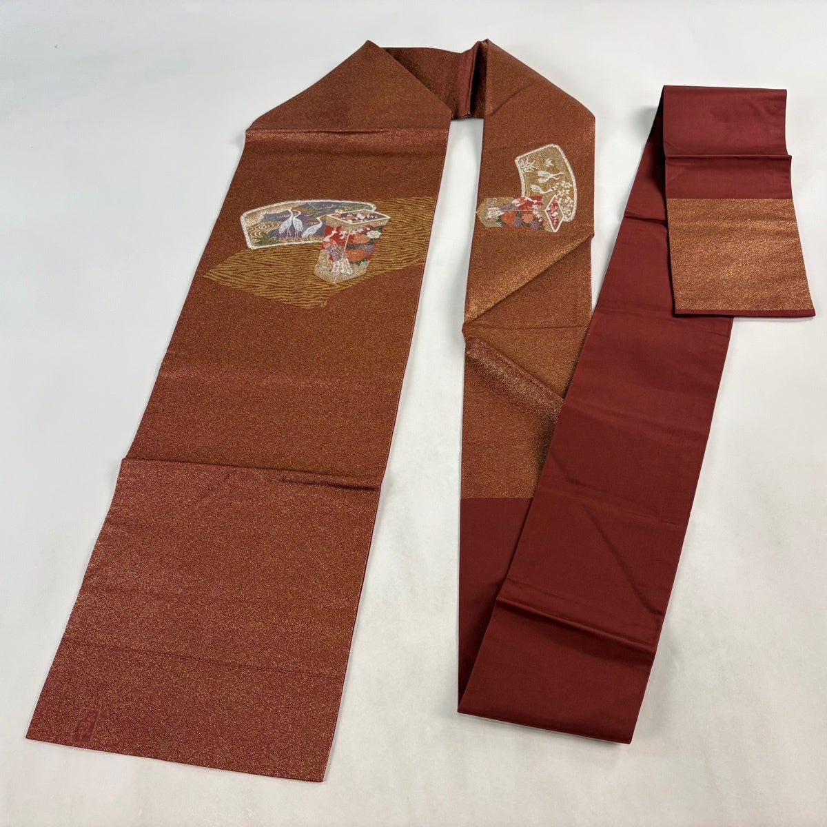 50%OFF 【美品】 名古屋帯 秀品 蕪 幾何学 茜色 正絹 K50