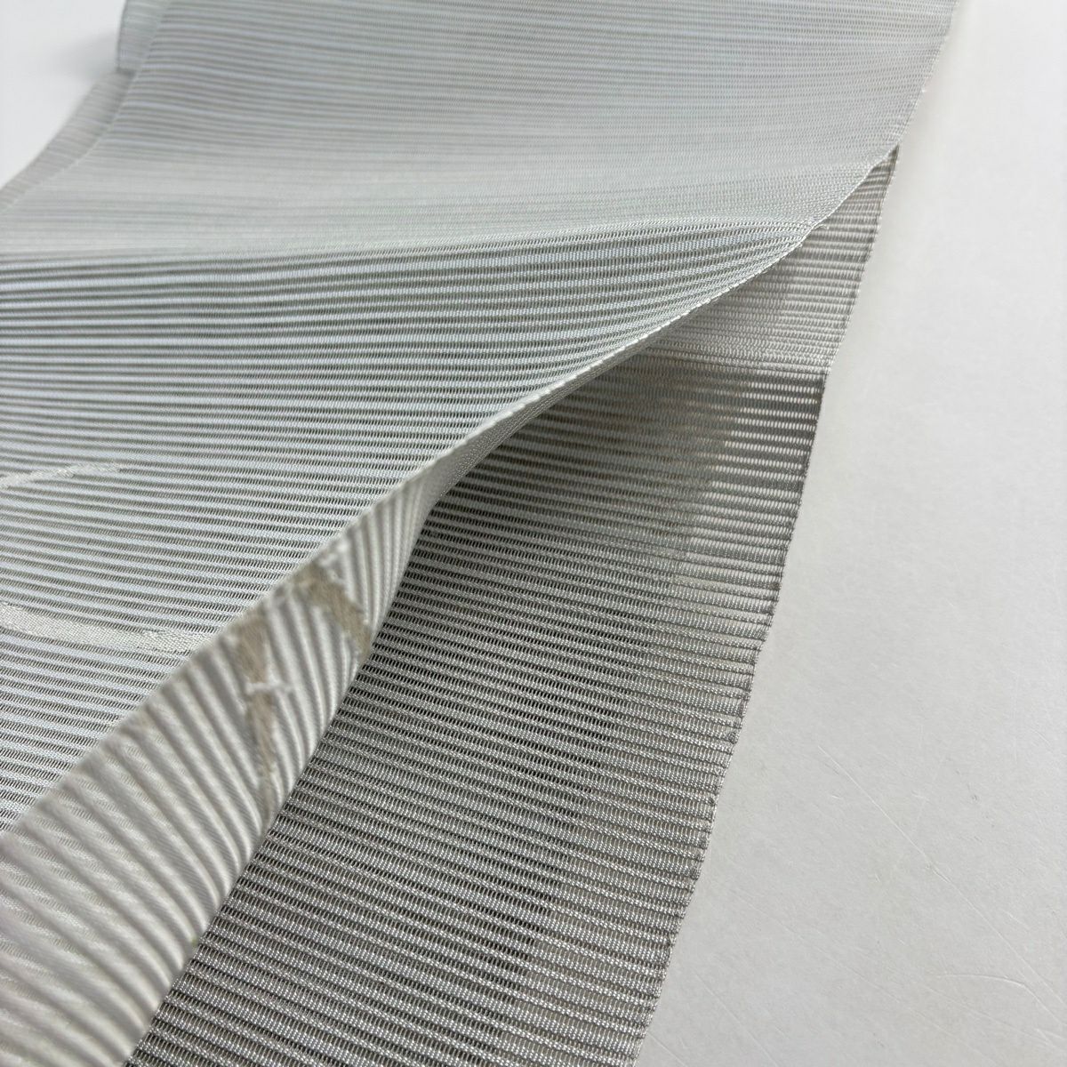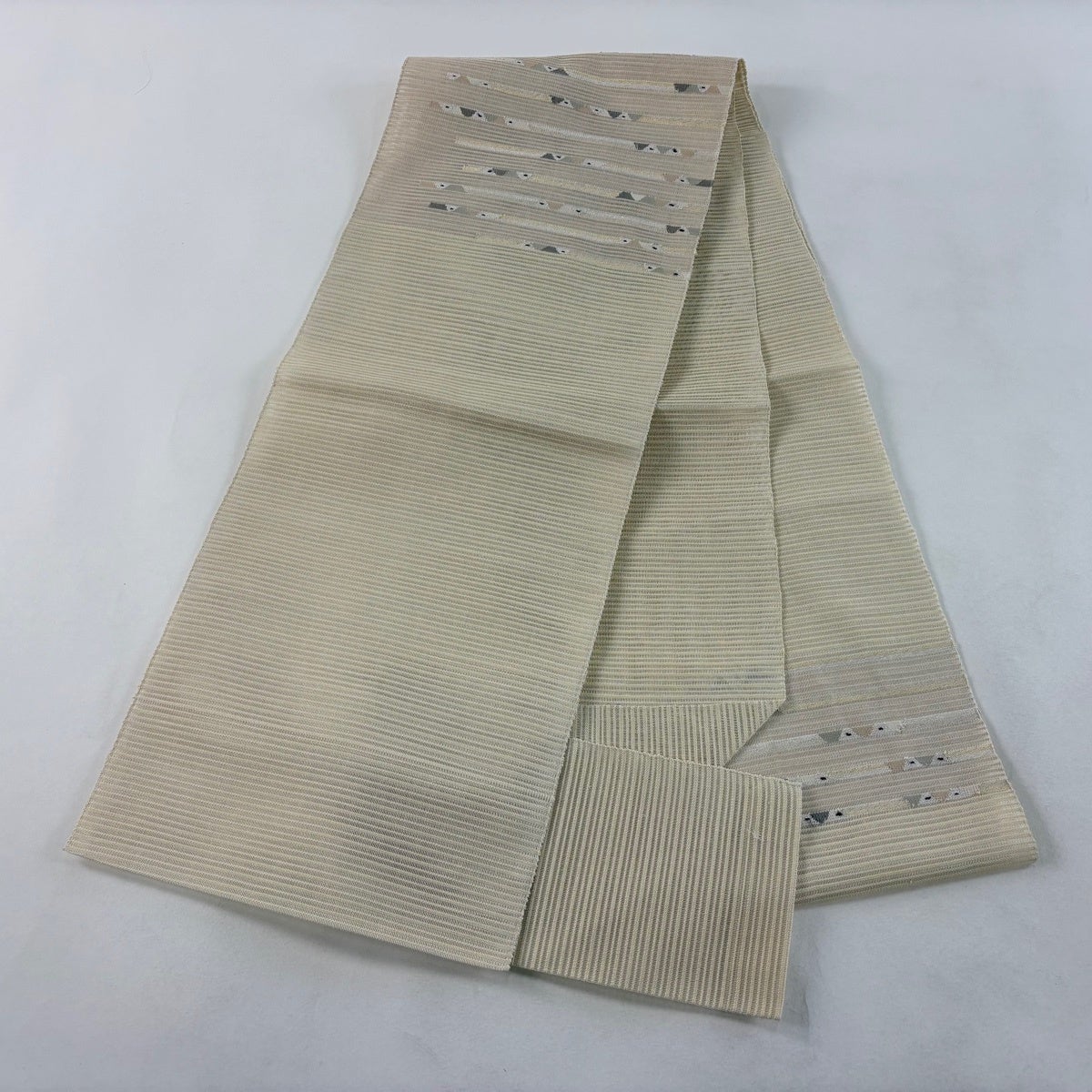 名古屋帯 秀品 夏帯 絽 松葉仕立て 八寸名古屋帯 縞 幾何学模様 金銀糸 ベージュ 正絹