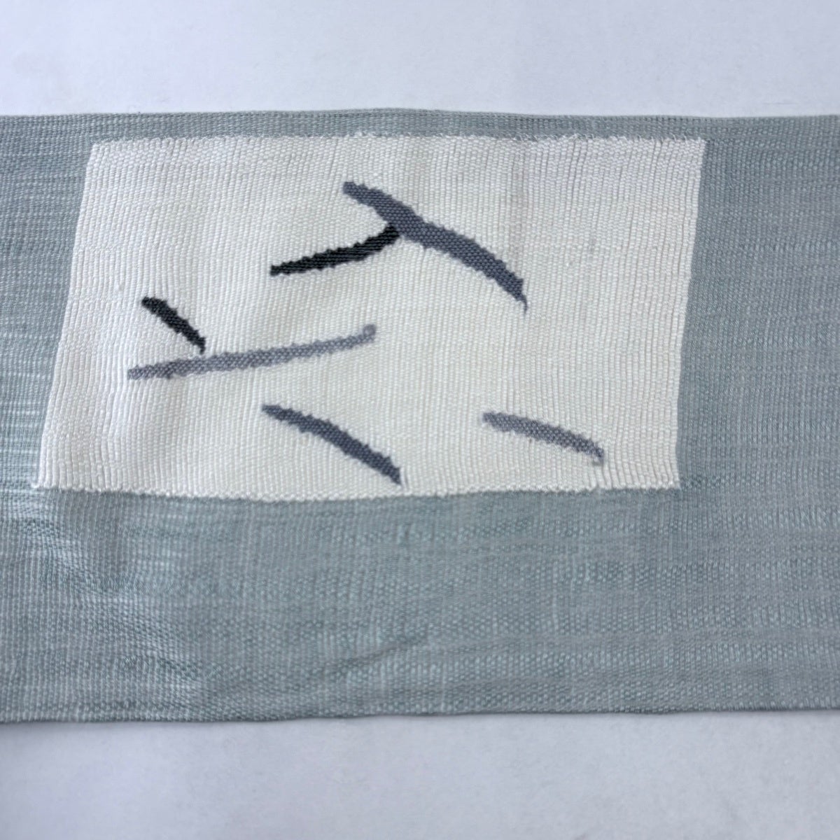 名古屋帯 秀品 幾何学模様 刺繍 灰色 正絹