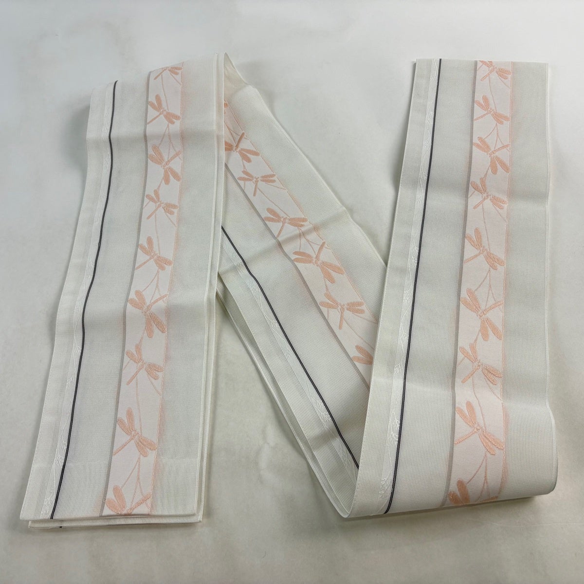 半幅帯 優品 麻の葉 縞 クリーム 化繊
