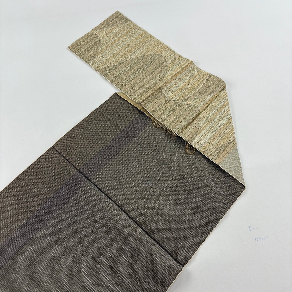 30%OFF 【美品】 名古屋帯 秀品 縞 幾何学 灰紫 正絹 K30