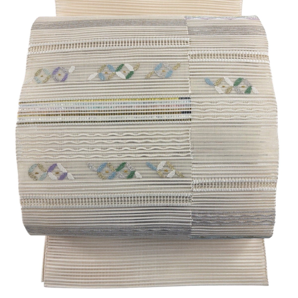 【美品】半幅帯 秀品 博多織 証紙有 縞 玩具 ベージュ 正絹
