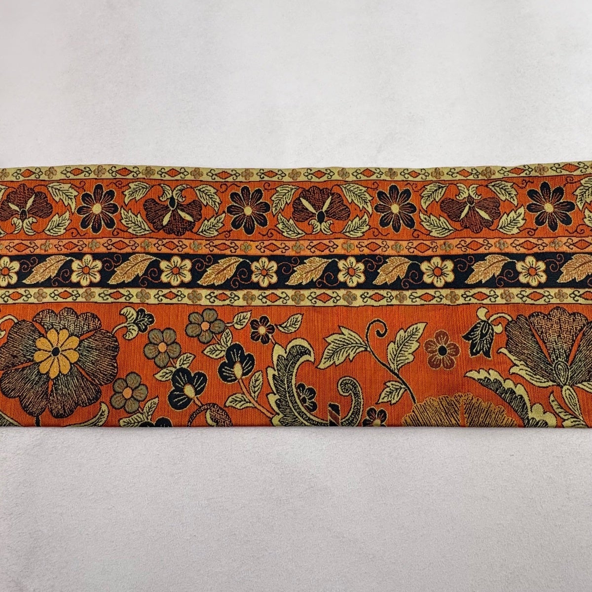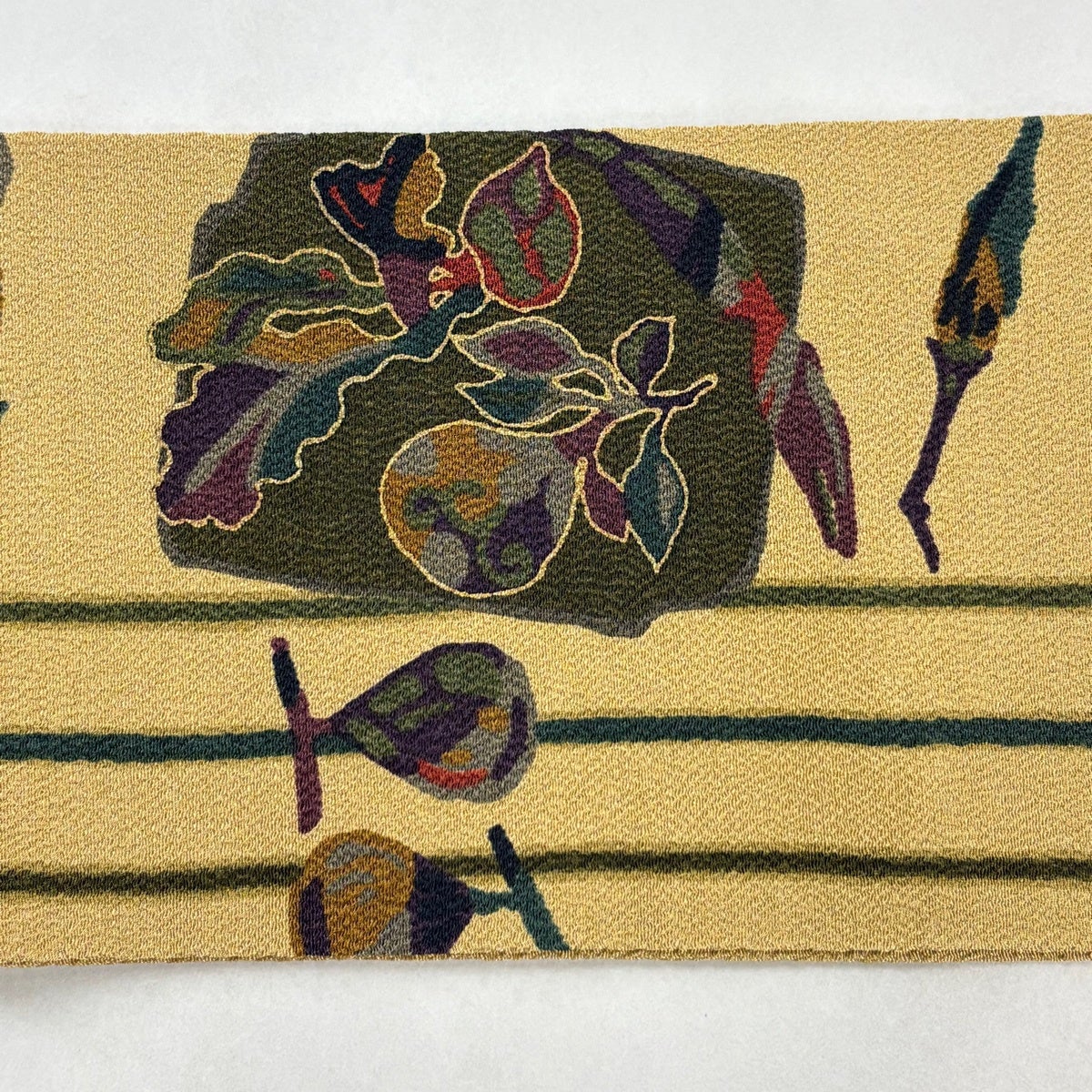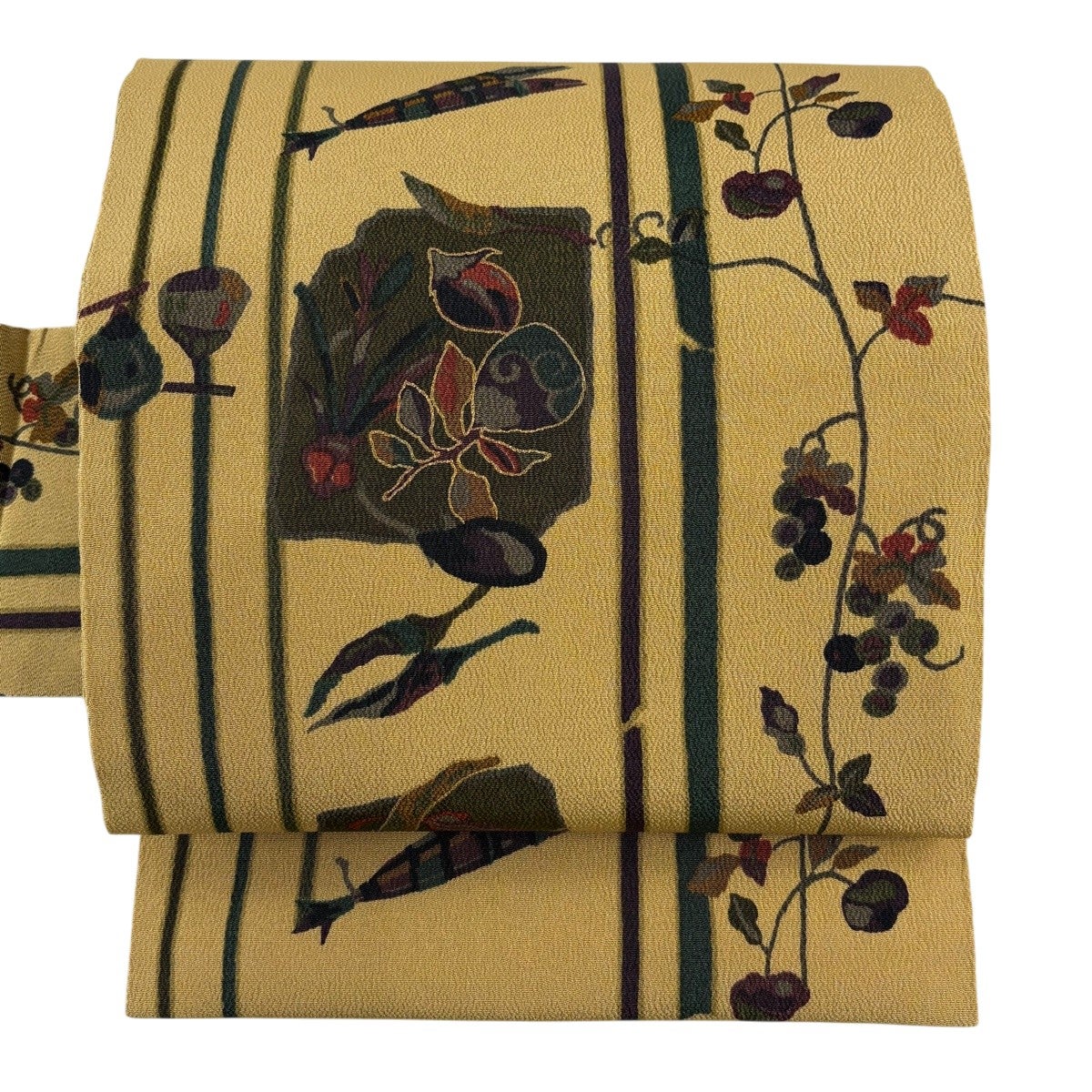 【美品】 名古屋帯 秀品 八寸名古屋帯 草花 金糸 箔 黄土色 正絹