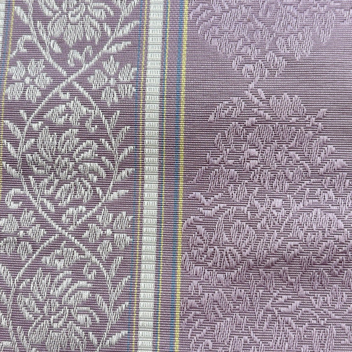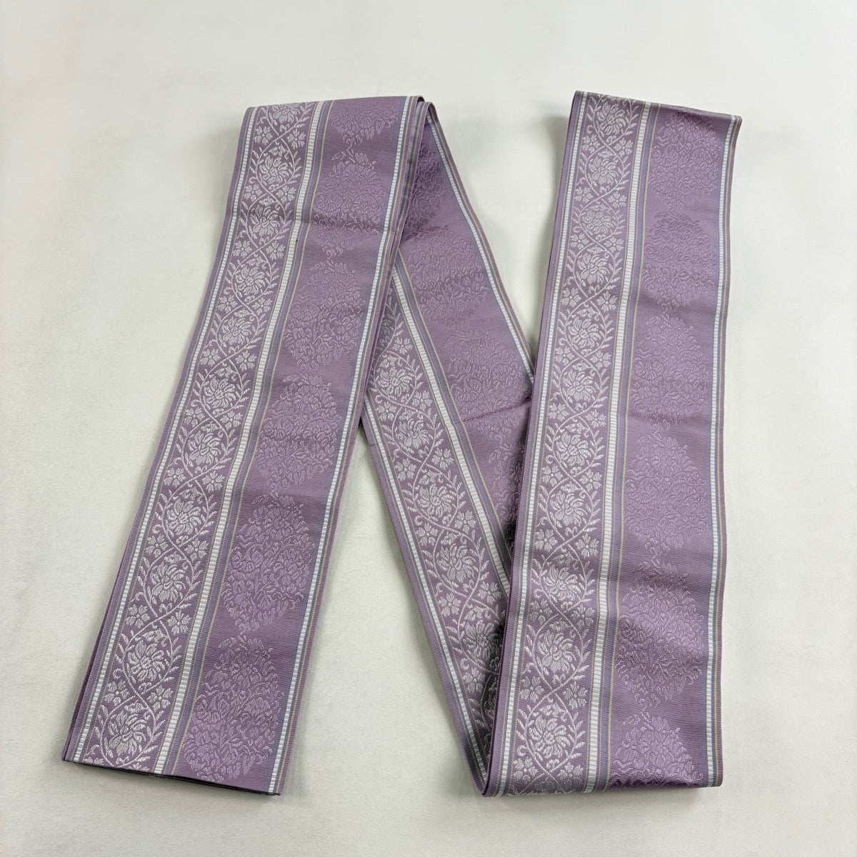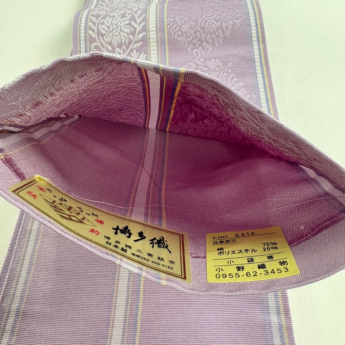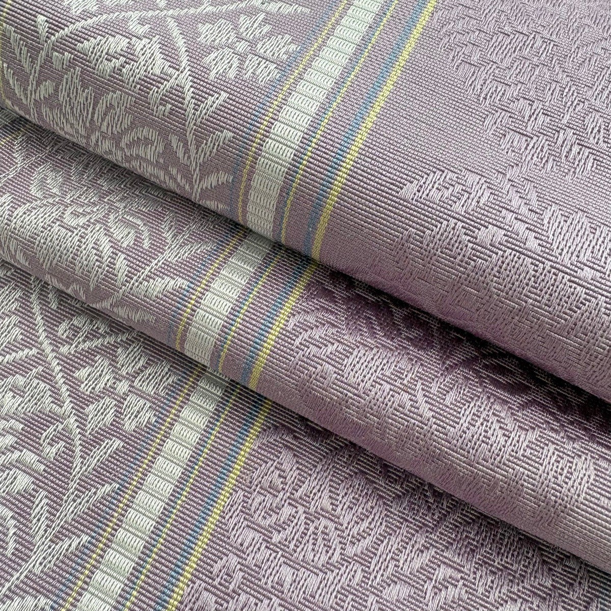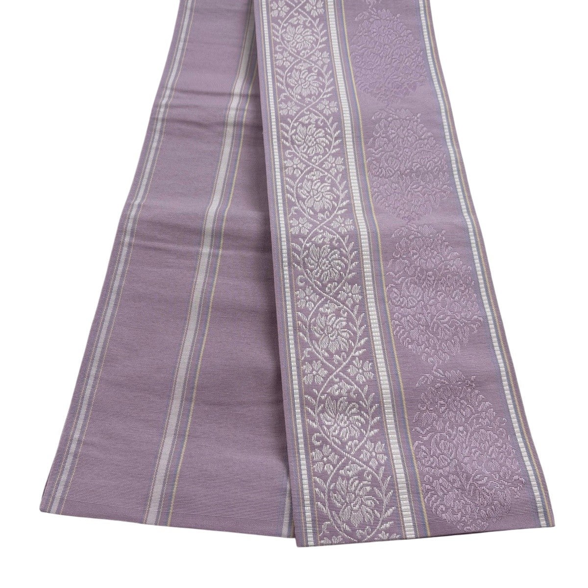 【美品】半幅帯 秀品 博多織 証紙有 縞 草花 薄紫 正絹