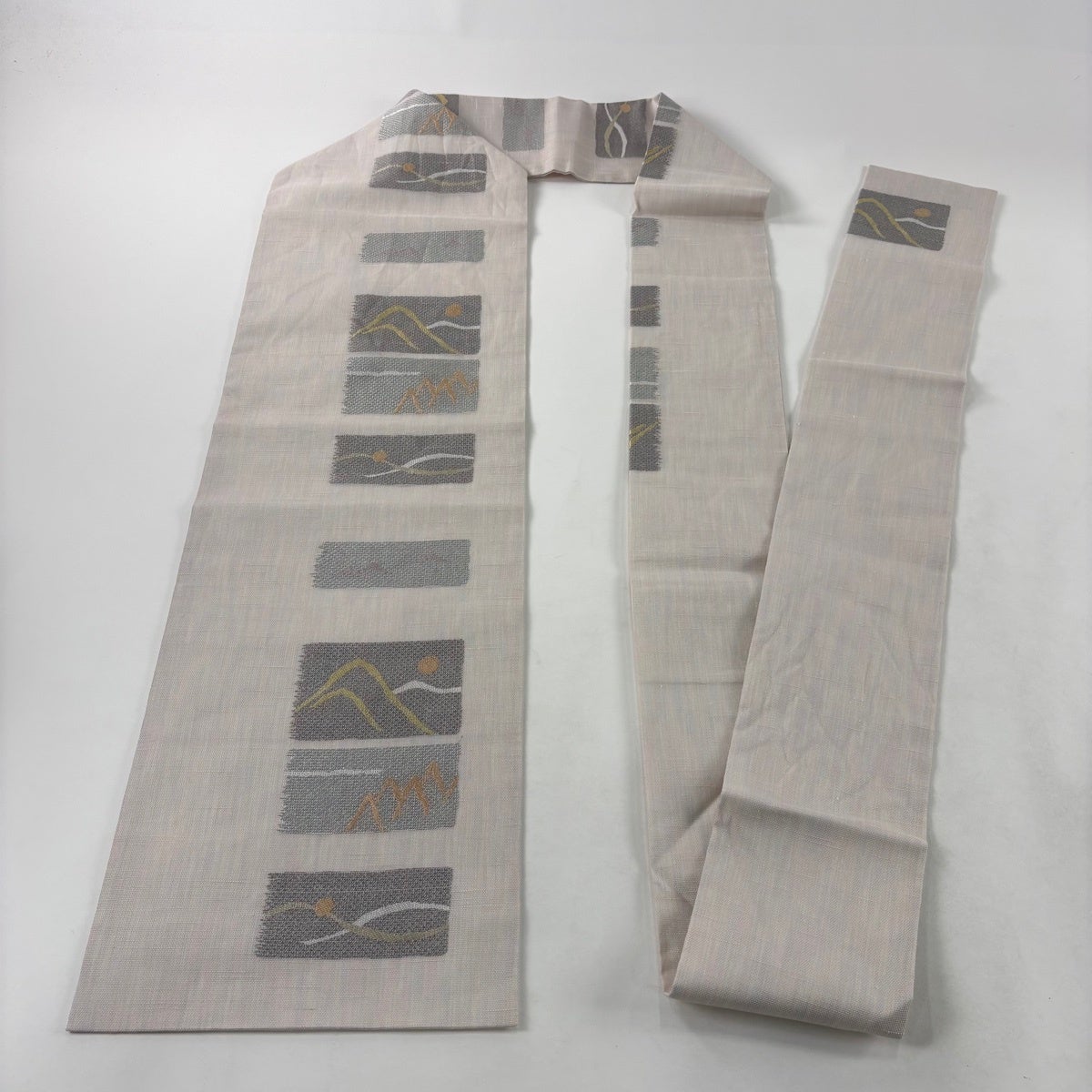 名古屋帯 秀品 八寸名古屋帯 松葉仕立て 幾何学模様 金糸 クリーム 正絹