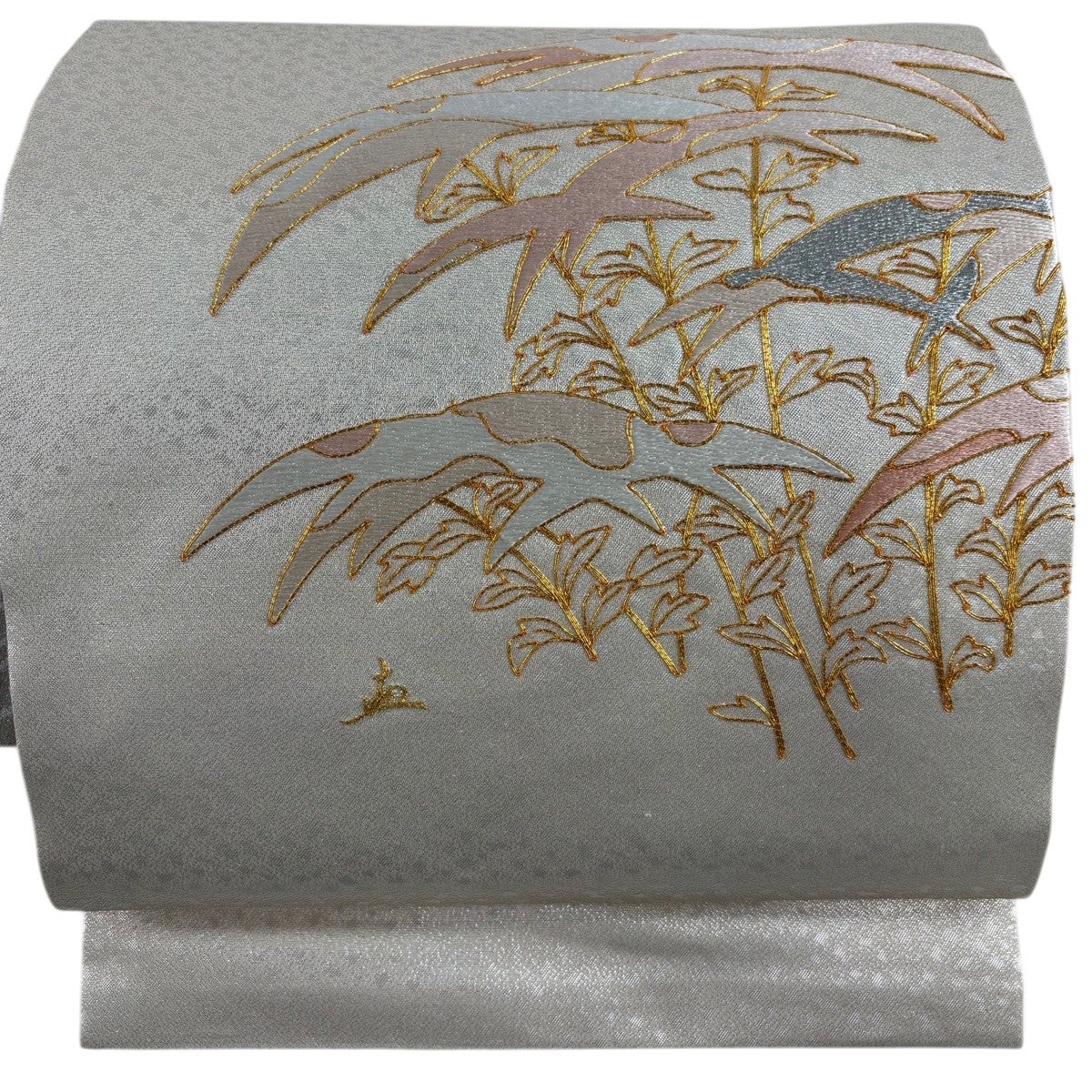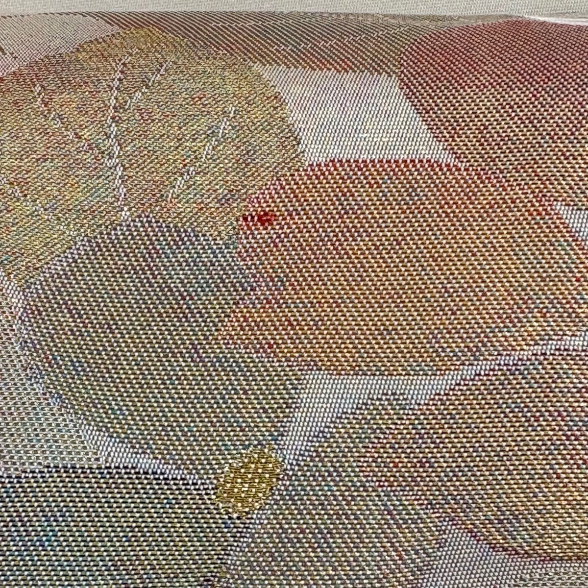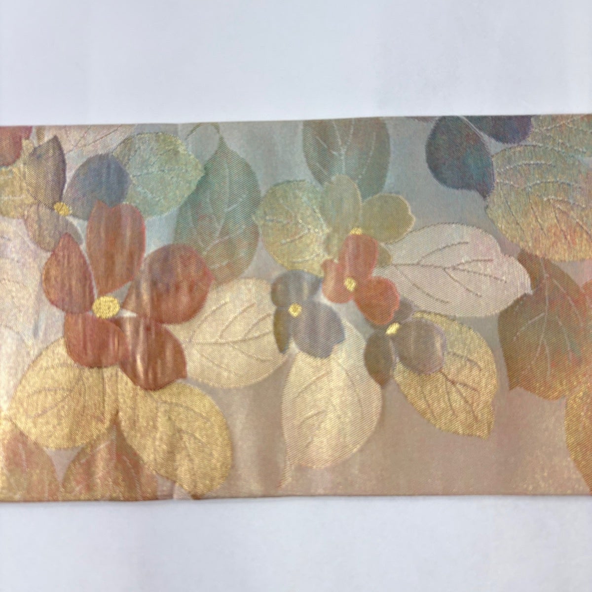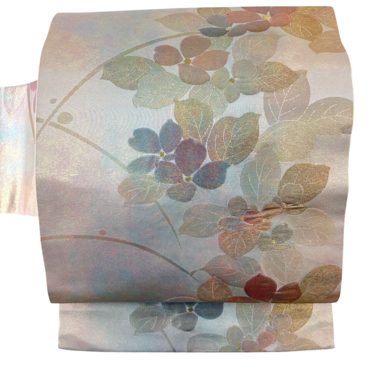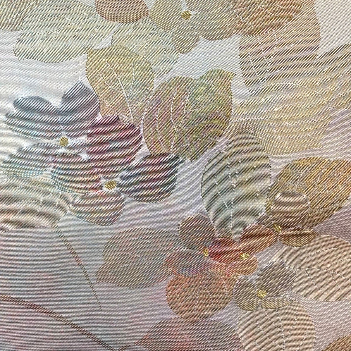 【美品】 名古屋帯 優品 色紙 草花 銀糸 箔 銀色 正絹