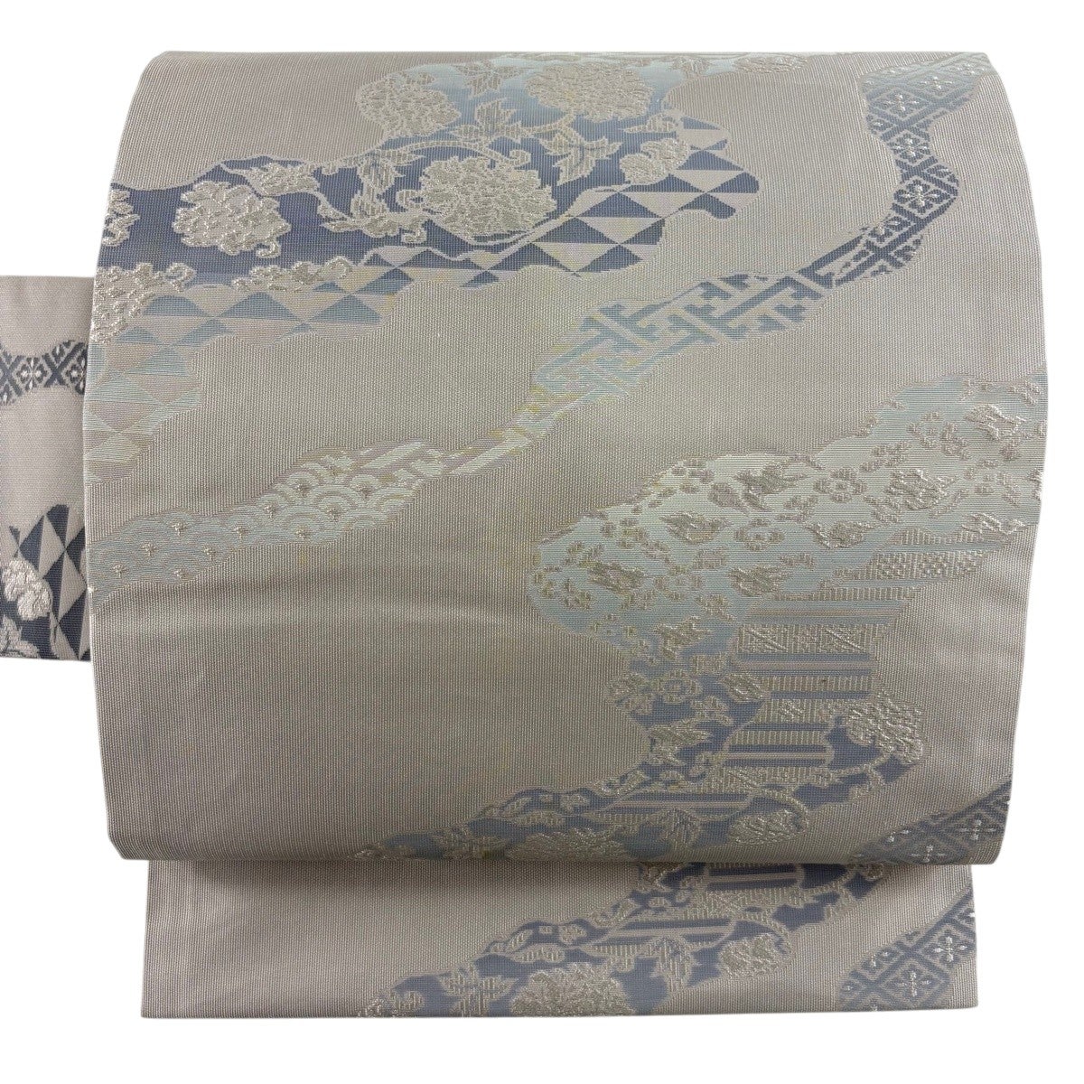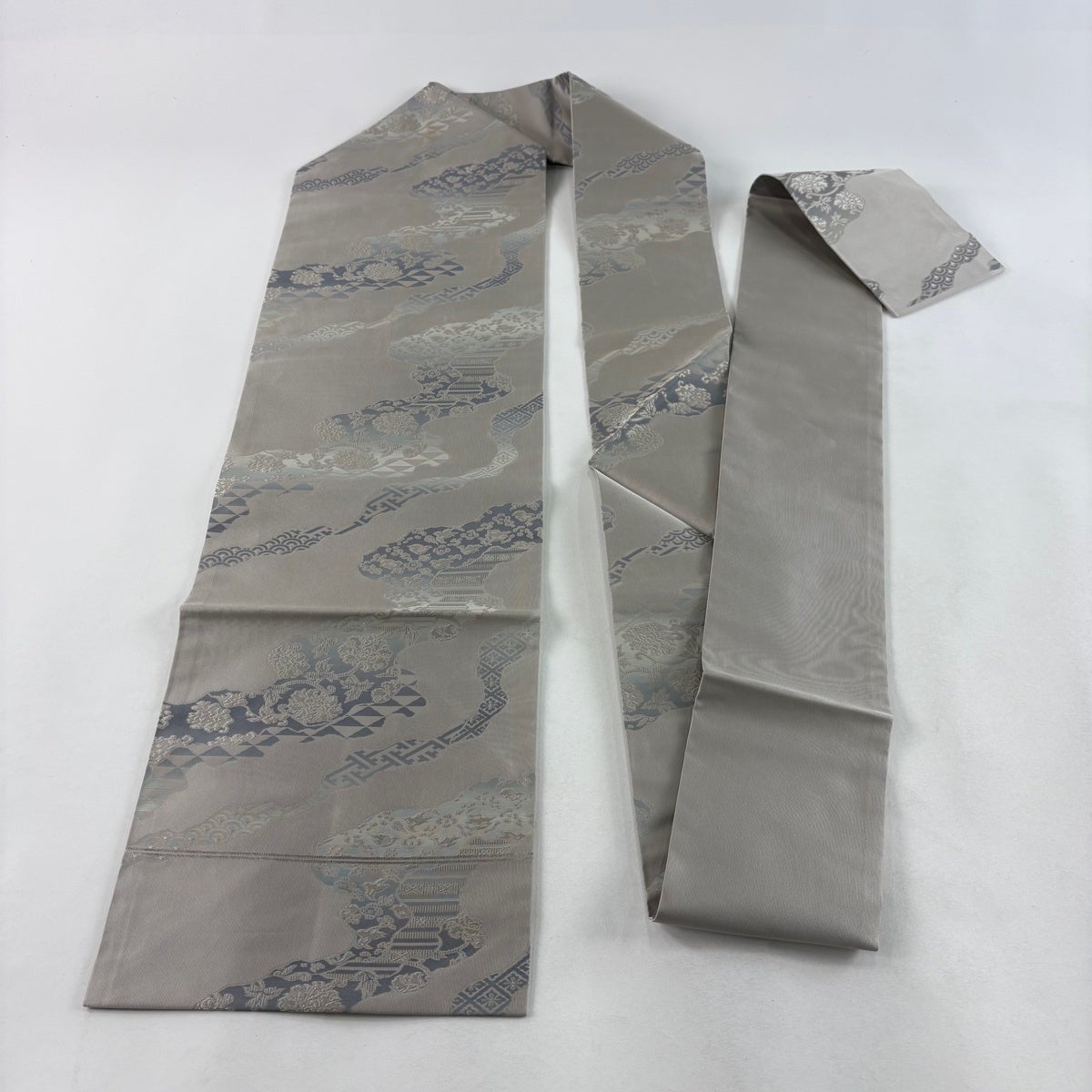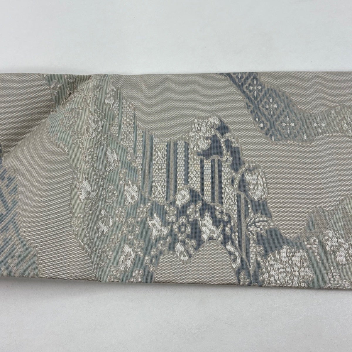 名古屋帯 秀品 華文 亀甲 青灰色 正絹