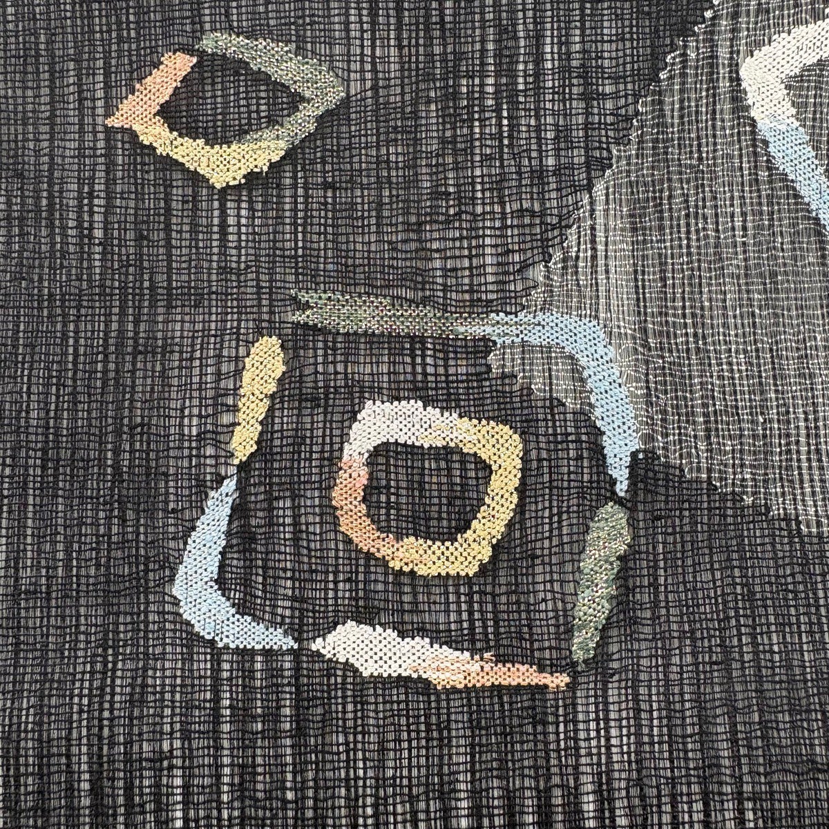 【美品】 名古屋帯 秀品 夏帯 絽 八寸名古屋帯 松葉仕立て よろけ縞 幾何学模様 銀糸 クリーム 正絹
