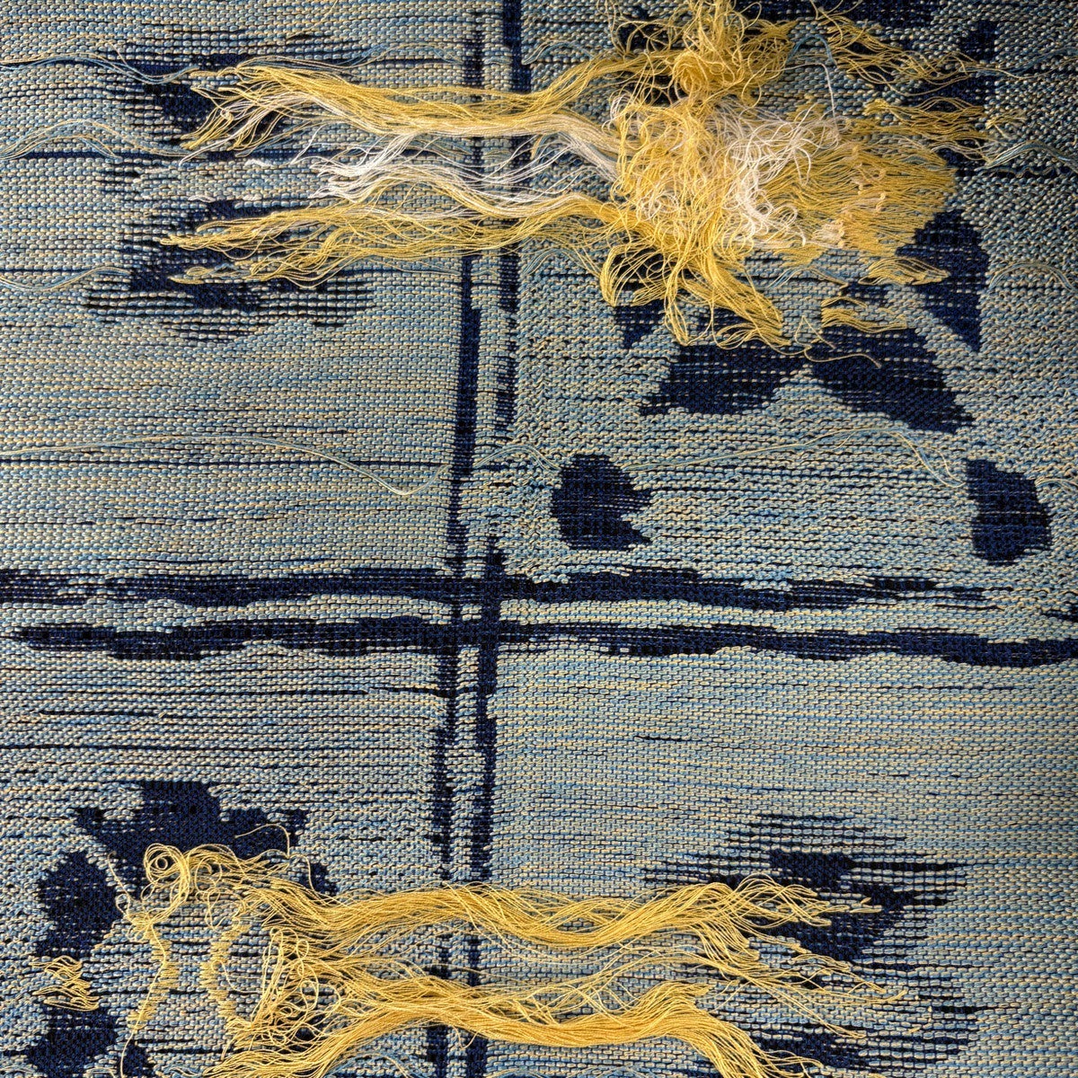 名古屋帯 秀品 紬地 草花 霞 山吹色 正絹