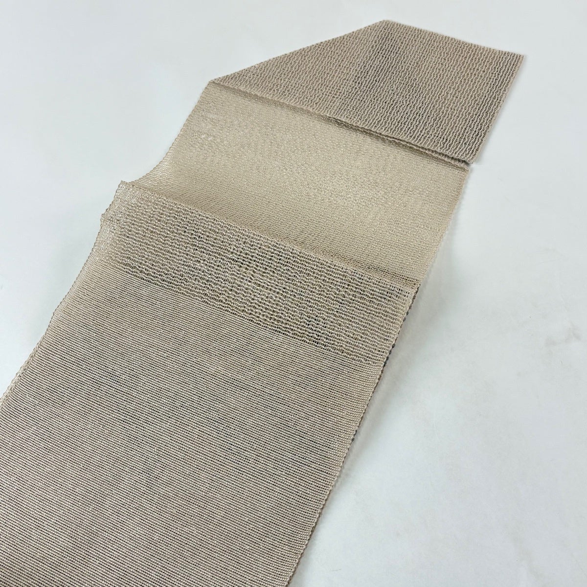 名古屋帯 秀品 夏帯 八寸名古屋帯 絽 松葉仕立て トンネル仕立て 幾何学模様 縞 ベージュ 正絹