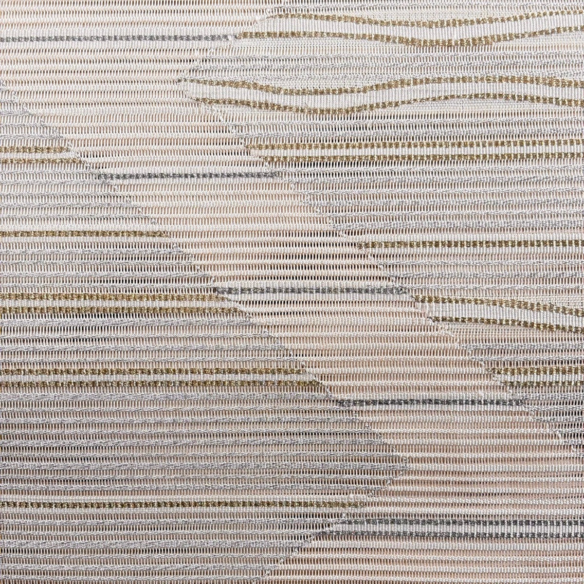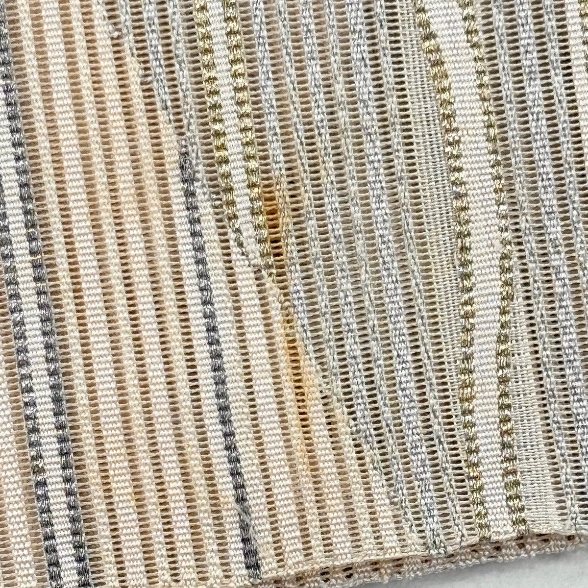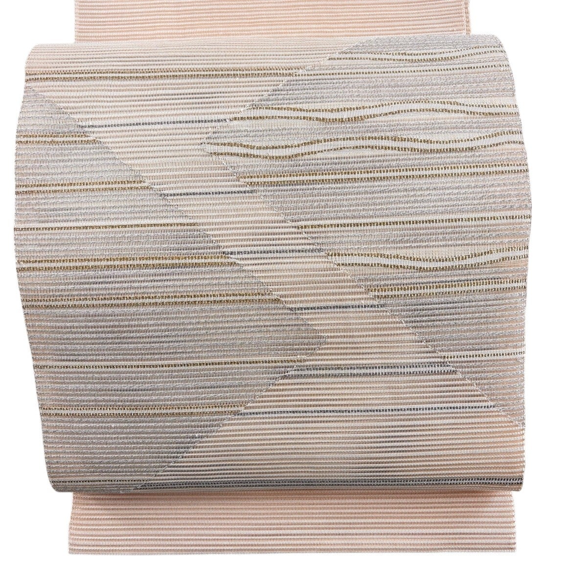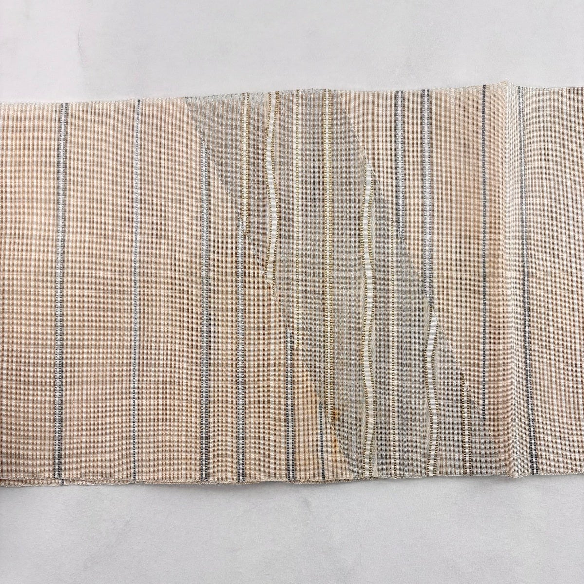 【美品】 名古屋帯 秀品 八寸名古屋帯 夏帯 よろけ縞 幾何学模様 金銀糸 ベージュ 正絹