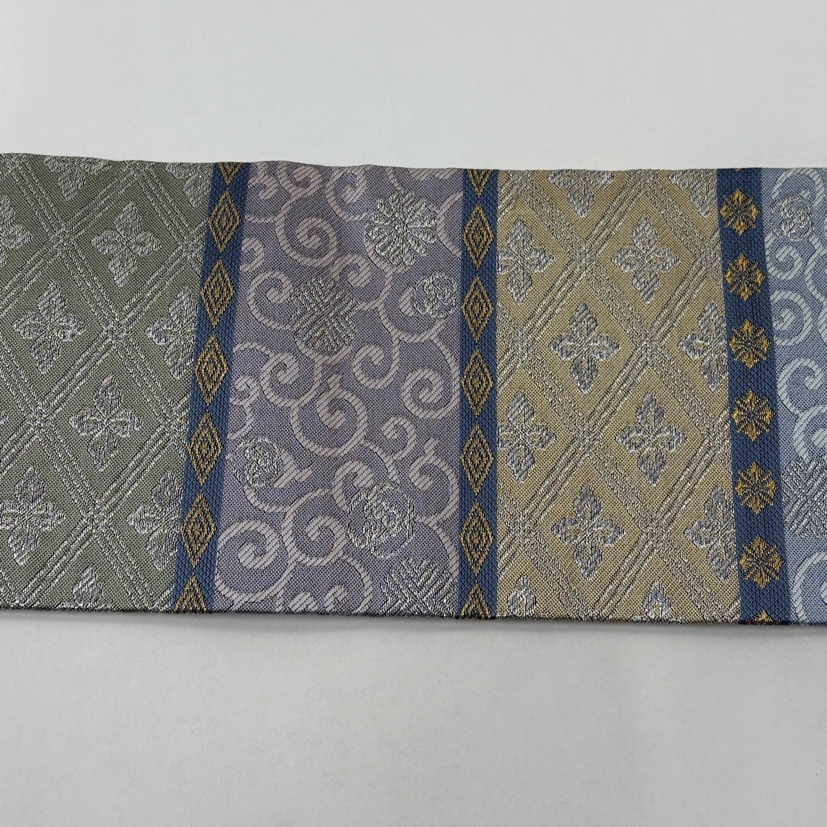 【美品】 名古屋帯 秀品 花菱 花唐草 金銀糸 灰紫 正絹