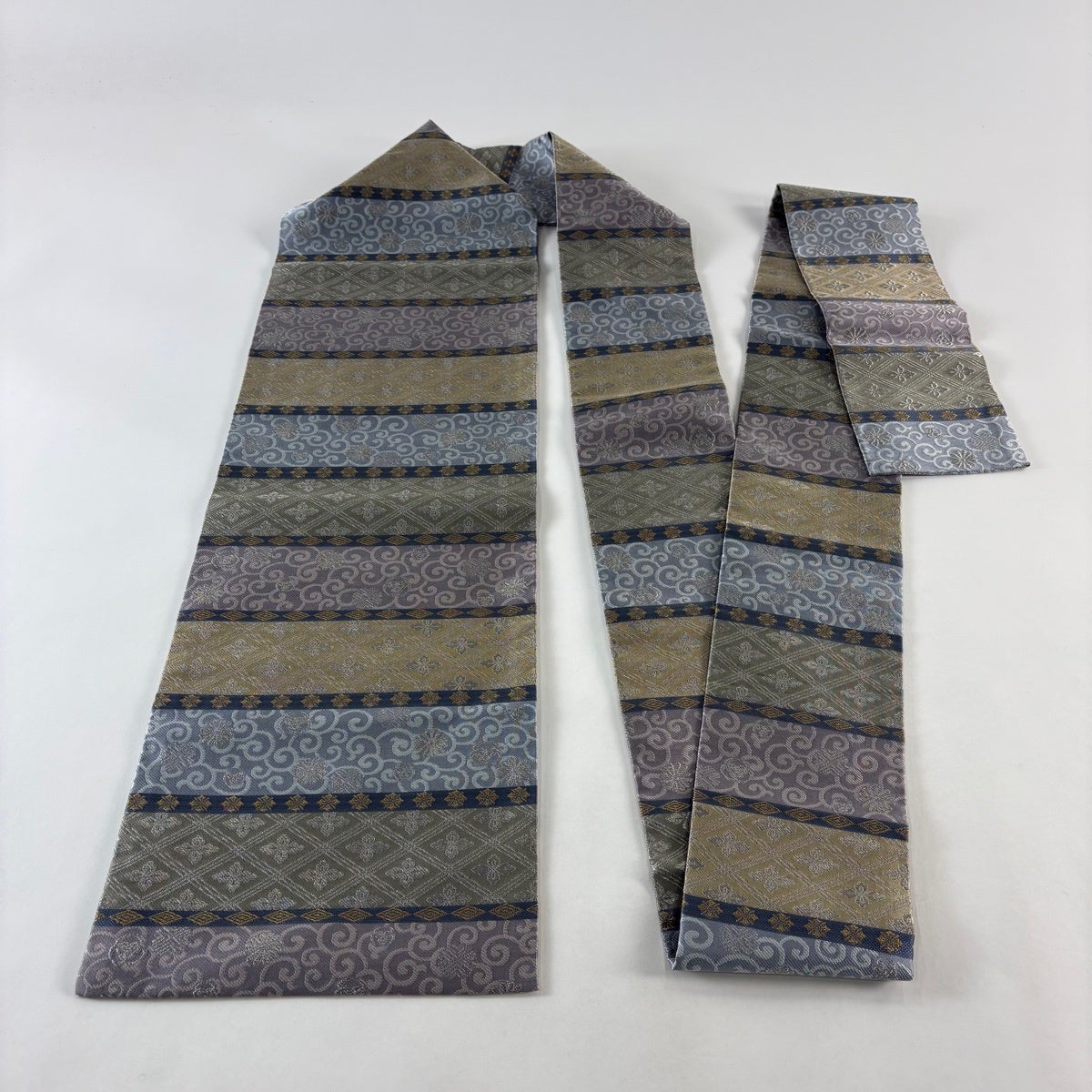 【在庫一掃】 名古屋帯 逸品 八寸名古屋帯 松葉仕立て 有職文様 縞 薄茶色 正絹