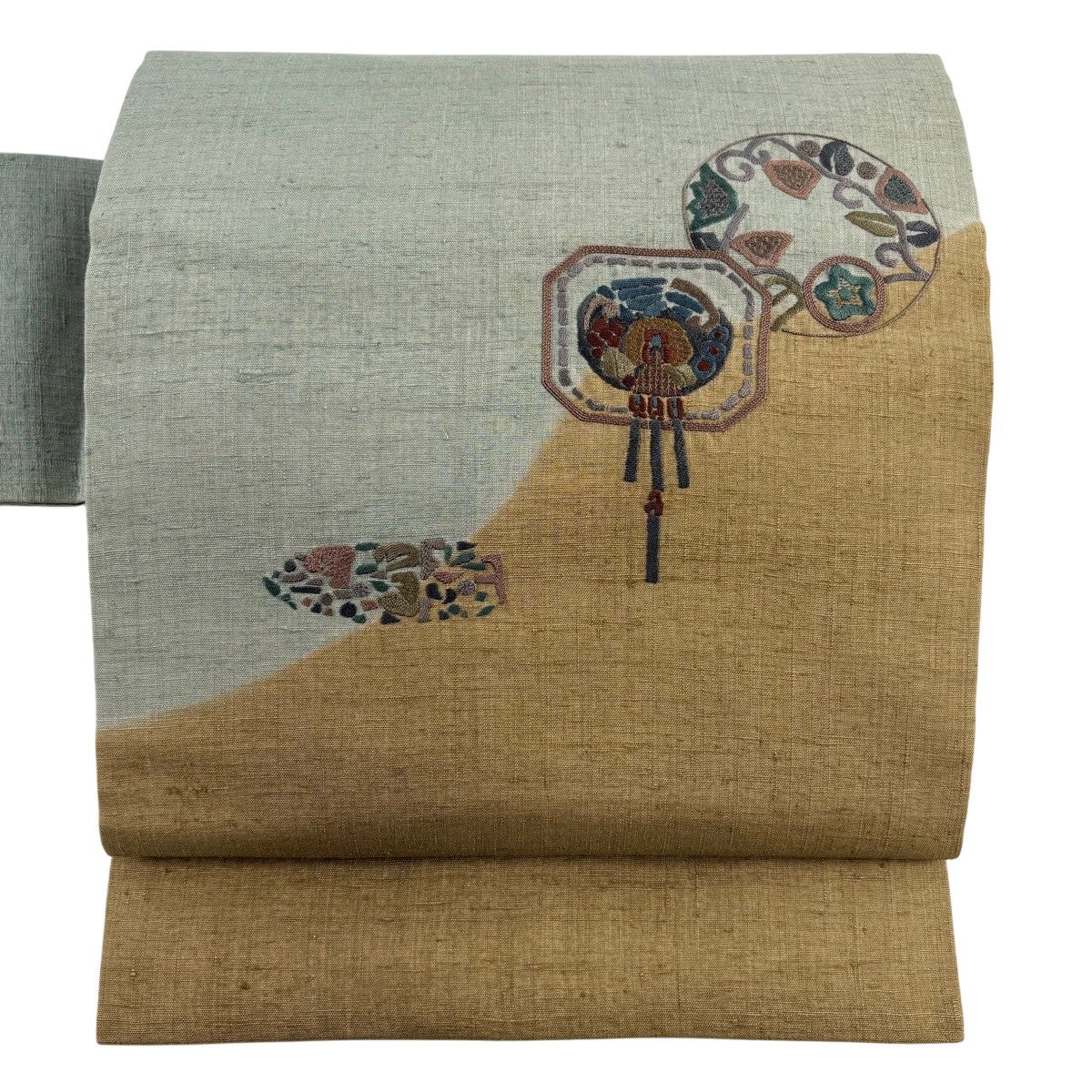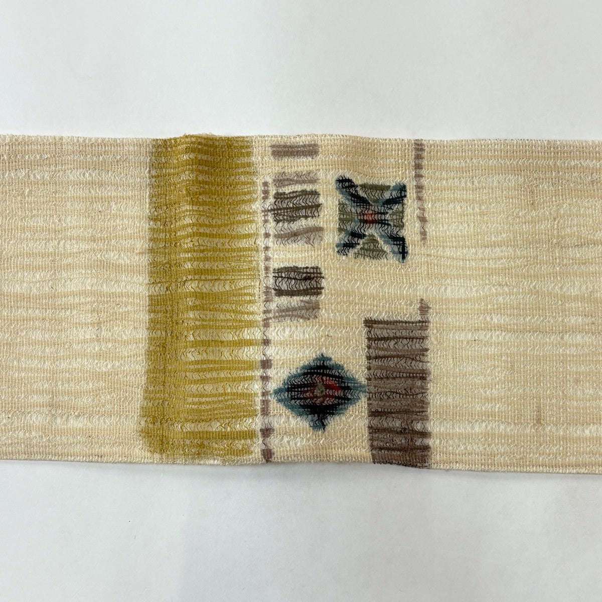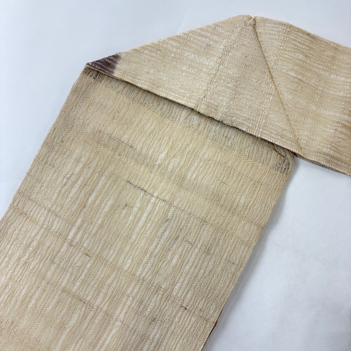 他の画像を見る 50%OFF 名古屋帯 秀品 八寸名古屋帯 松葉仕立て 夏帯 絽 トンネル仕立て やまと 幾何学模様 金銀糸 ベージュ 正絹 K50 当店通常価格 ¥ 11,800 ¥ 5,900 税込