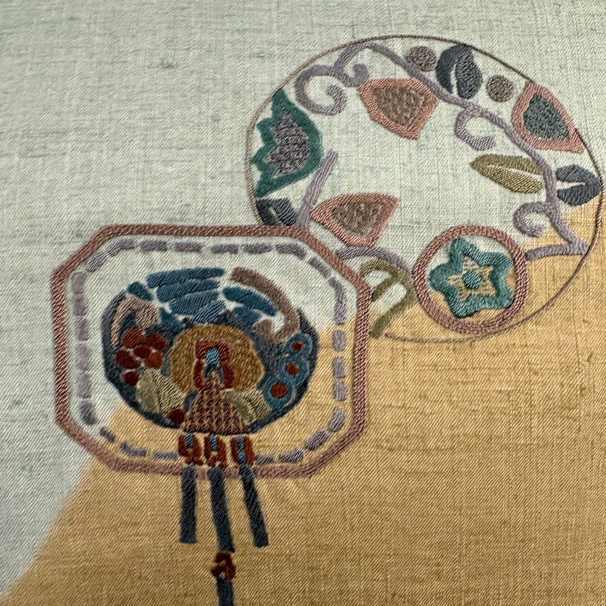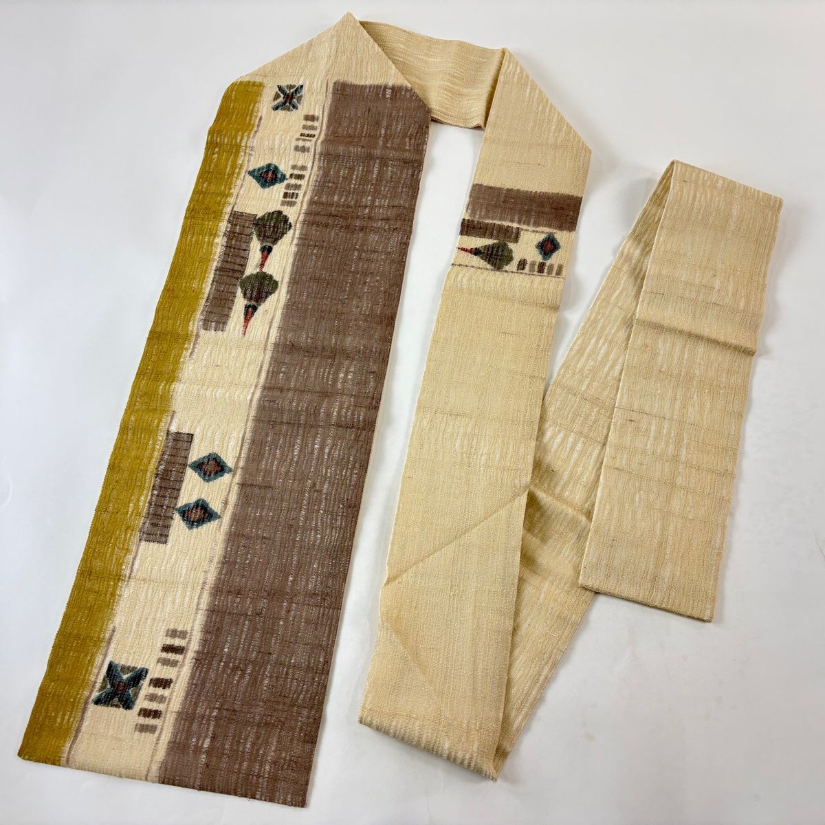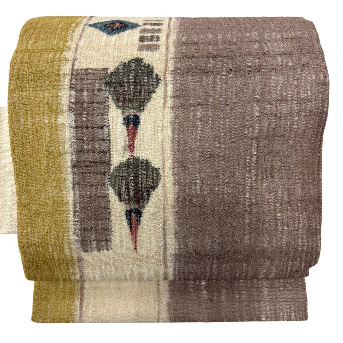 他の画像を見る 50%OFF 名古屋帯 秀品 八寸名古屋帯 松葉仕立て 夏帯 絽 トンネル仕立て やまと 幾何学模様 金銀糸 ベージュ 正絹 K50 当店通常価格 ¥ 11,800 ¥ 5,900 税込