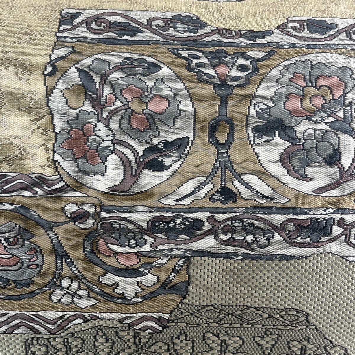 名古屋帯 秀品 花唐草 丸文 金銀彩 抹茶色 正絹