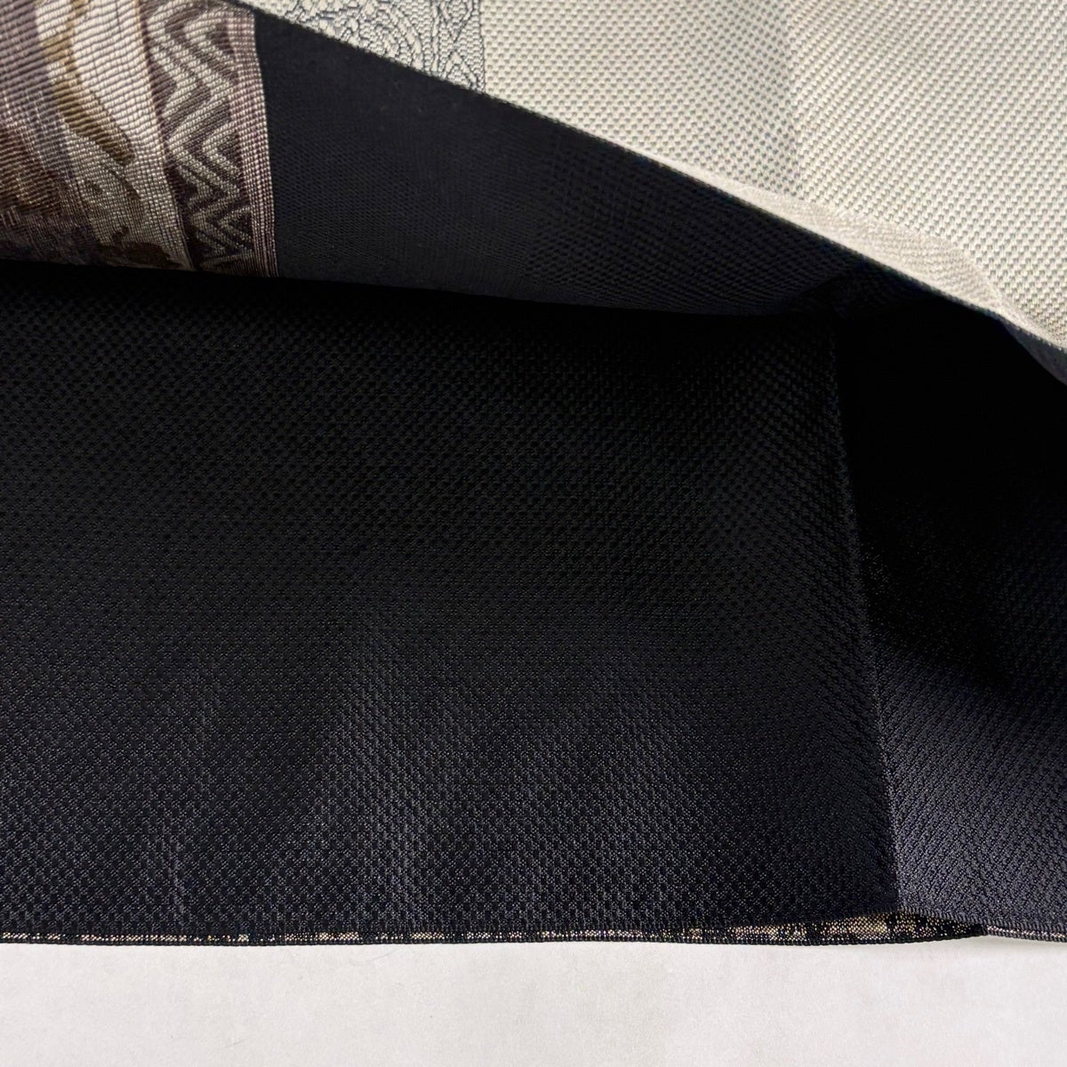 【美品】 名古屋帯 秀品 夏帯 トンネル仕立て 縞 幾何学模様 黒 正絹