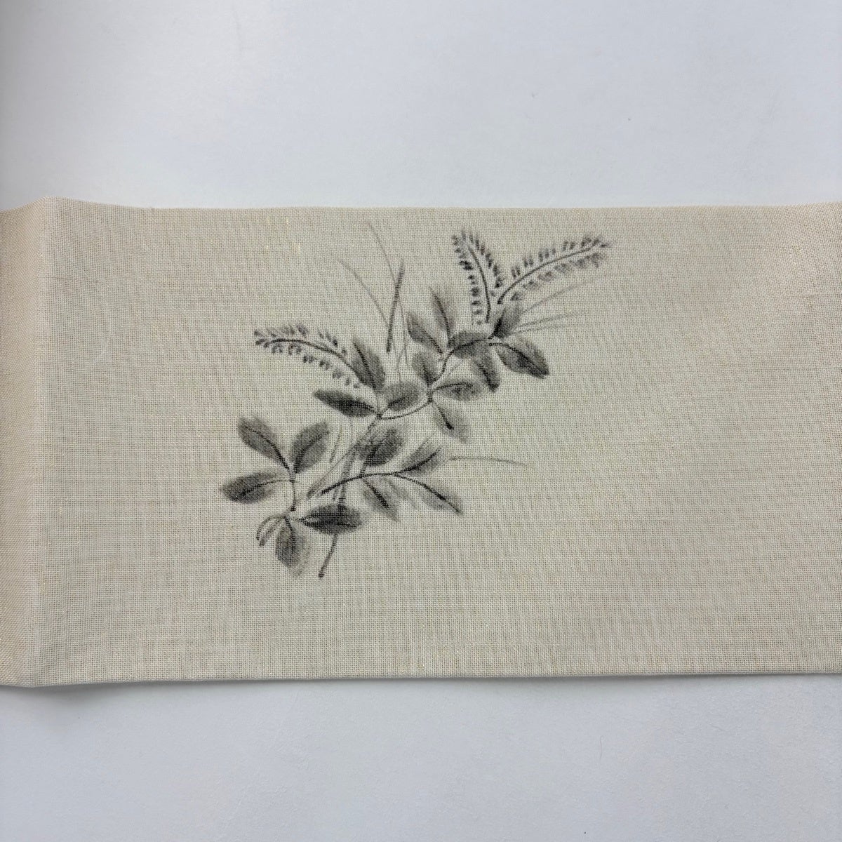 【美品】 名古屋帯 秀品 夏帯 八寸名古屋帯 トンネル仕立て 草花 薄茶色 正絹