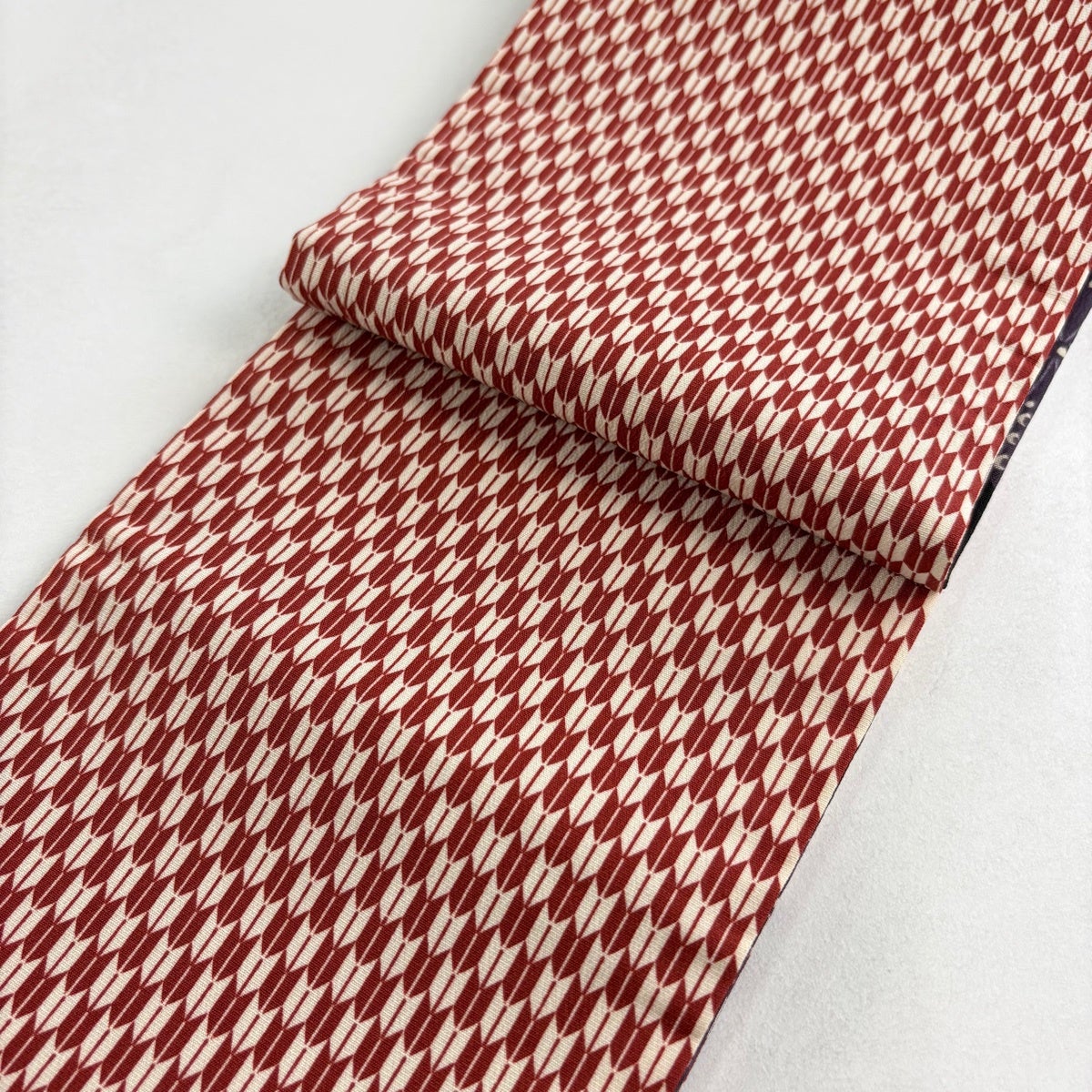 【美品】半幅帯 優品 撫松庵 幾何学模様 灰白 化繊