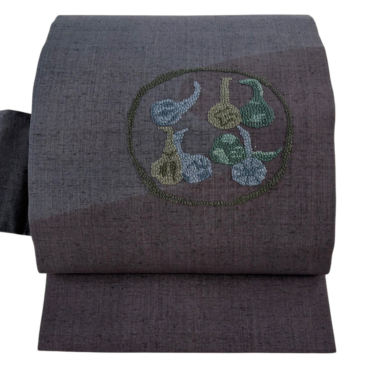 【美品】 名古屋帯 秀品 紬地 生り物 刺繍 灰色 正絹