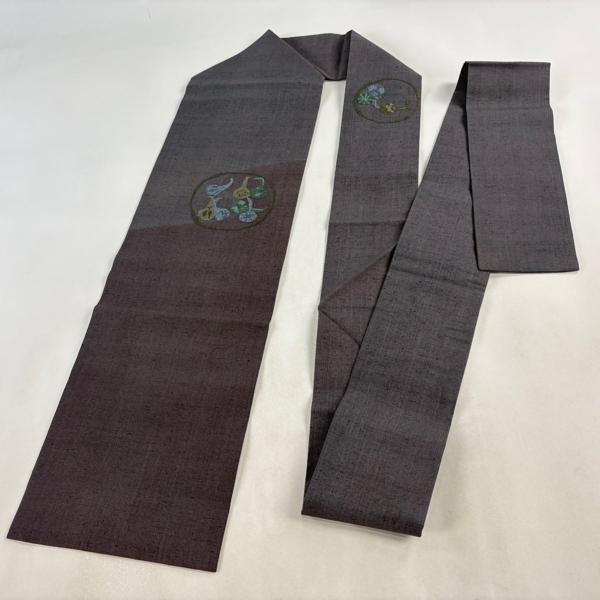 半幅帯 優品 桜 麻の葉 濃紫 化繊