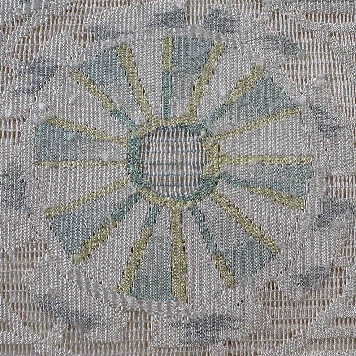 名古屋帯 秀品 紬地 菱 幾何学模様 刺繍 青灰色 正絹