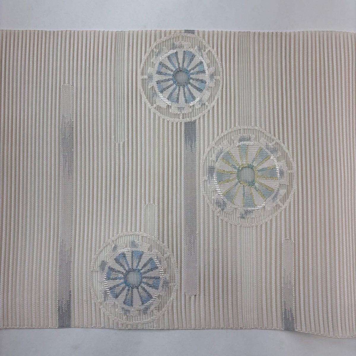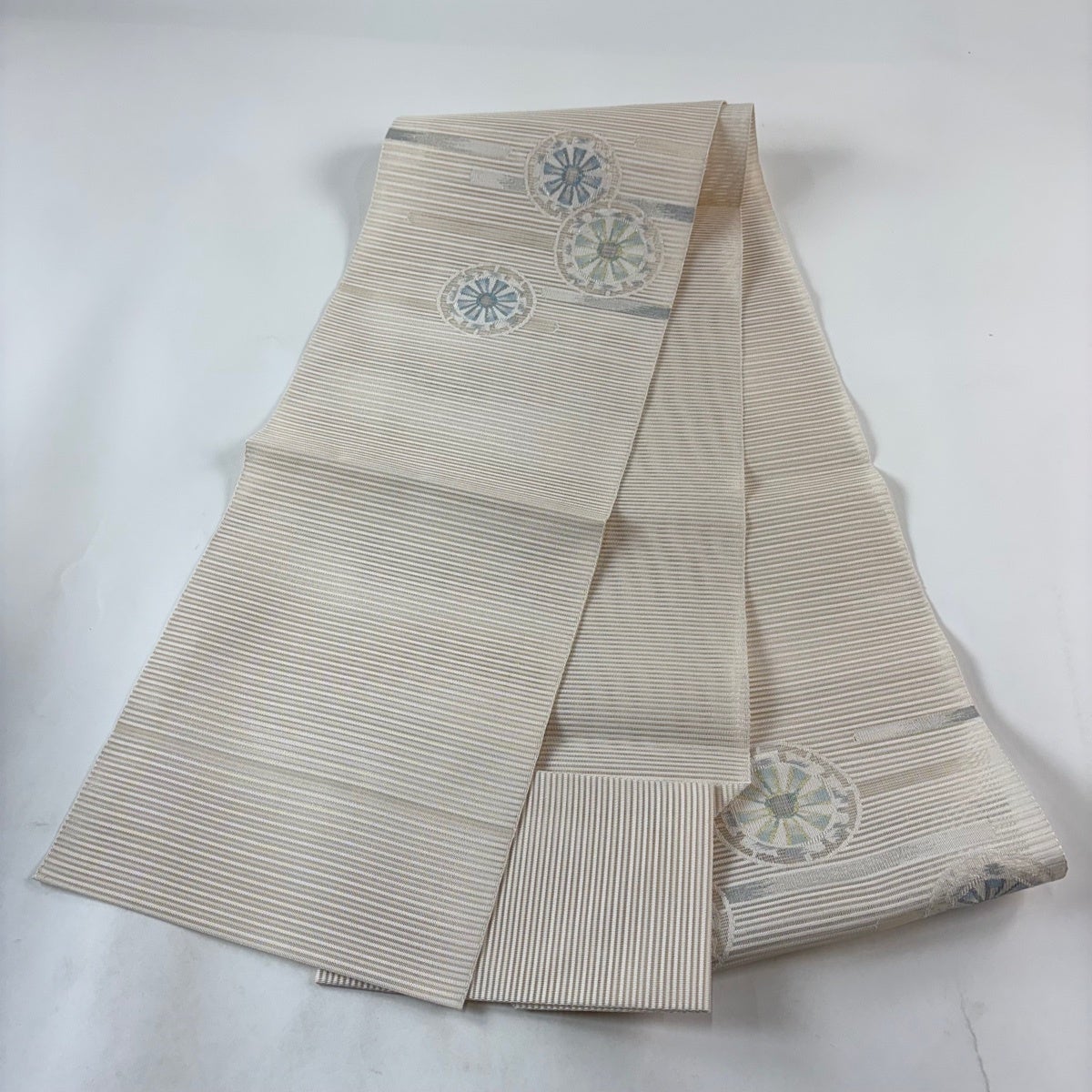 【美品】 袋名古屋帯 秀品 雪輪 縞 箔 クリーム 正絹