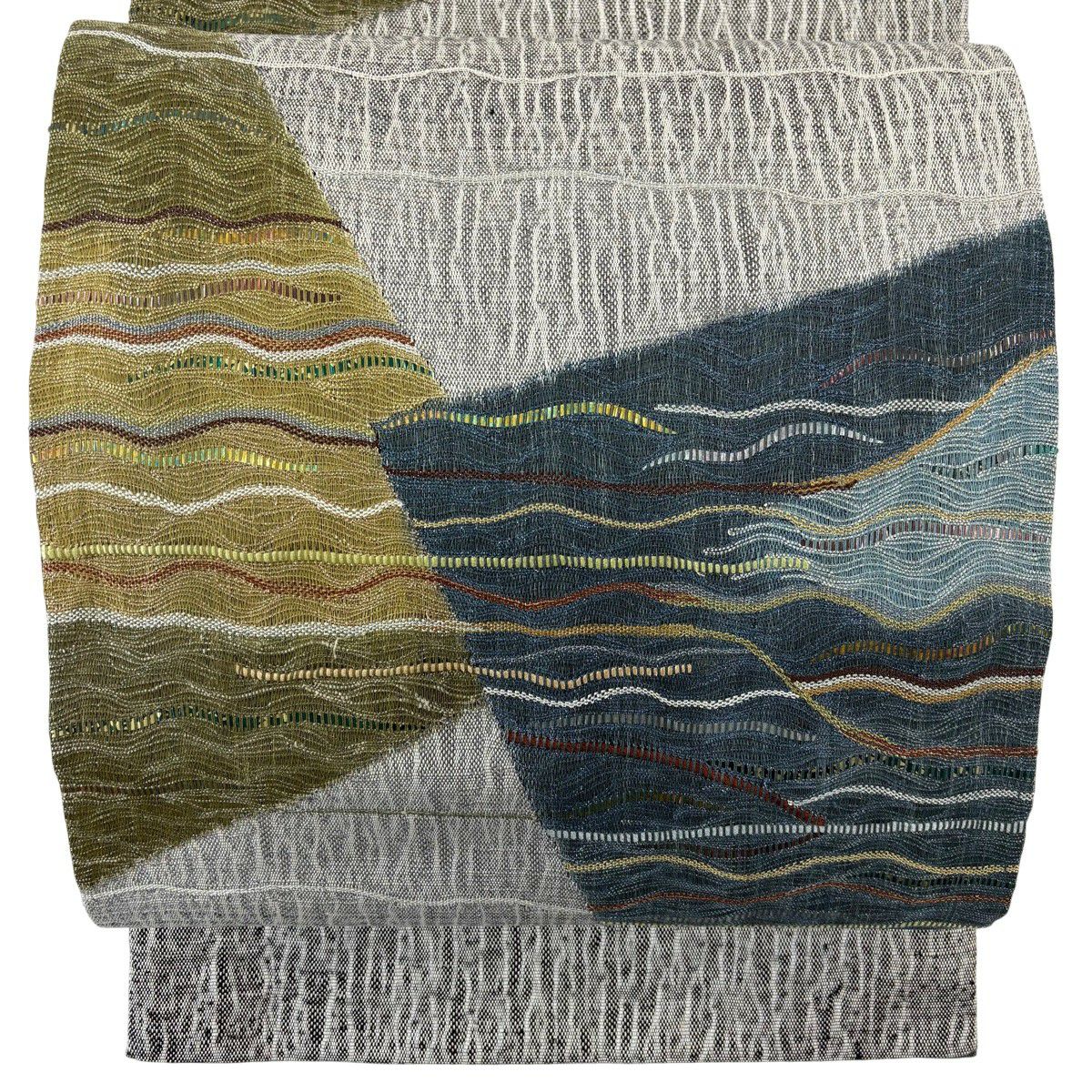 袋名古屋帯 秀品 夏帯 幾何学 箔 青灰色 正絹