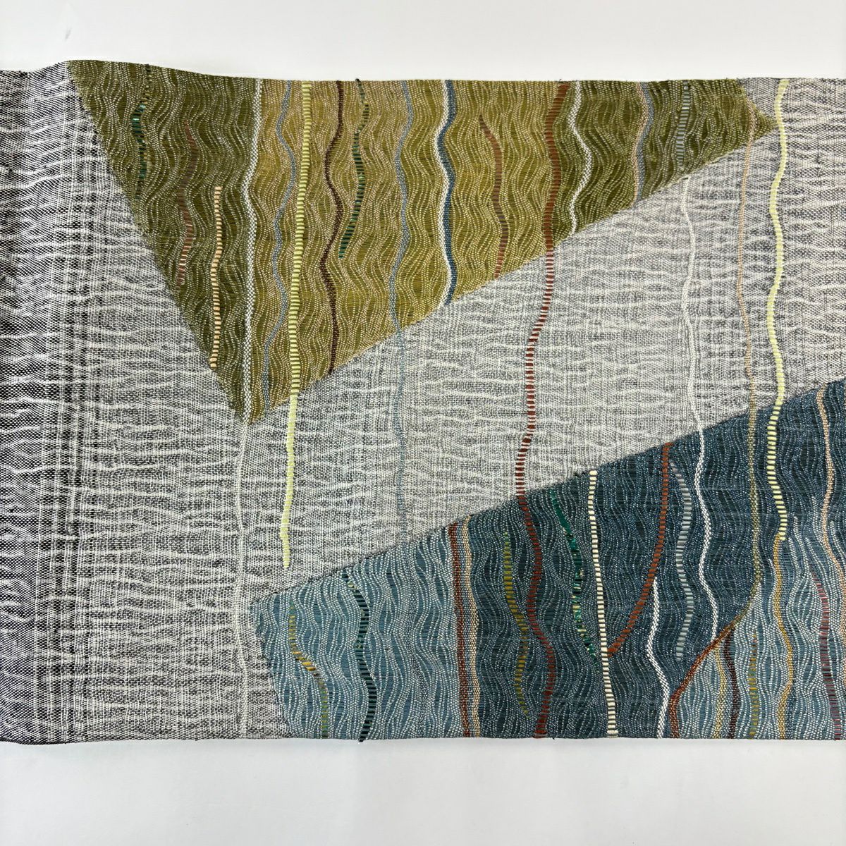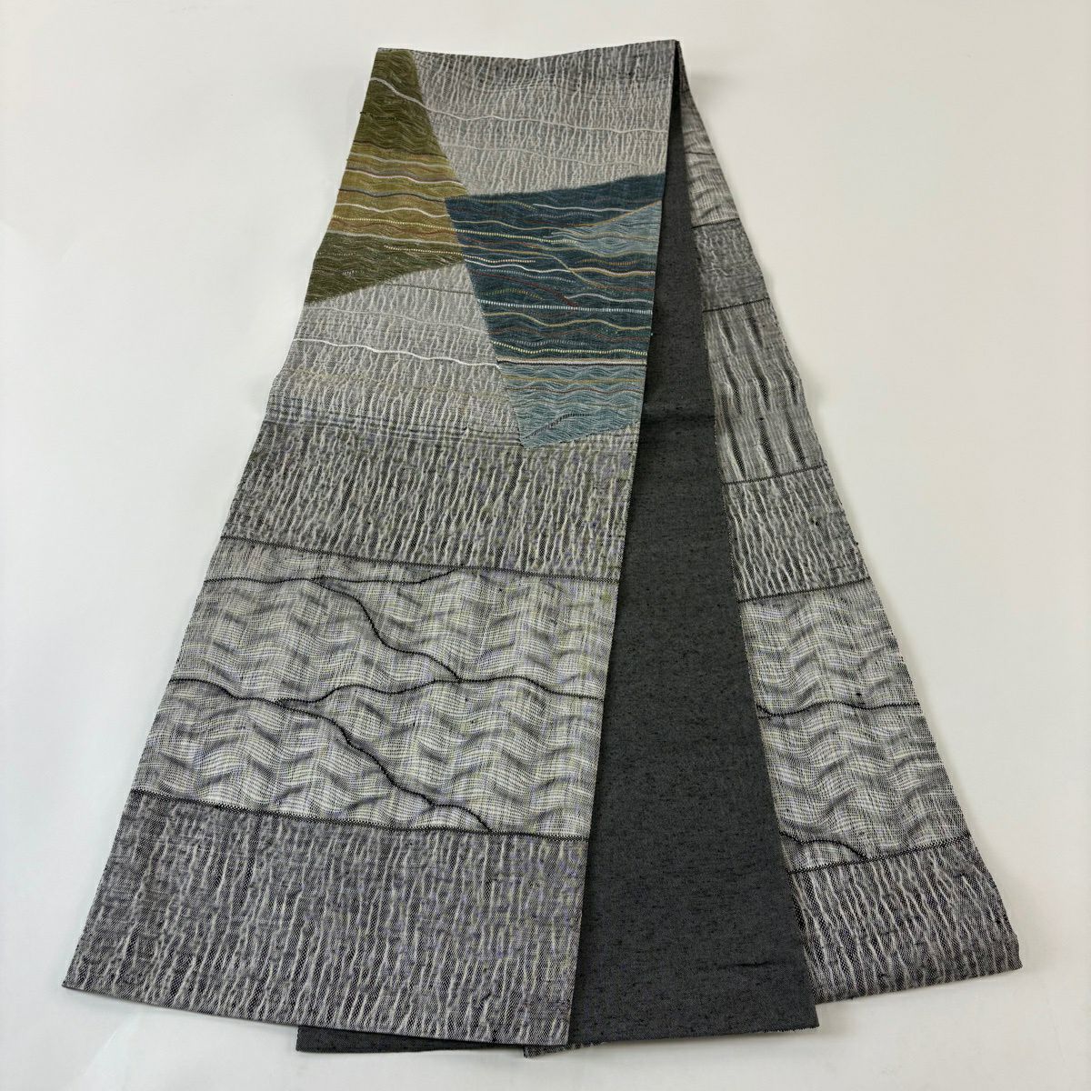 名古屋帯 秀品 紬地 ヱ霞 絞り 灰緑 正絹