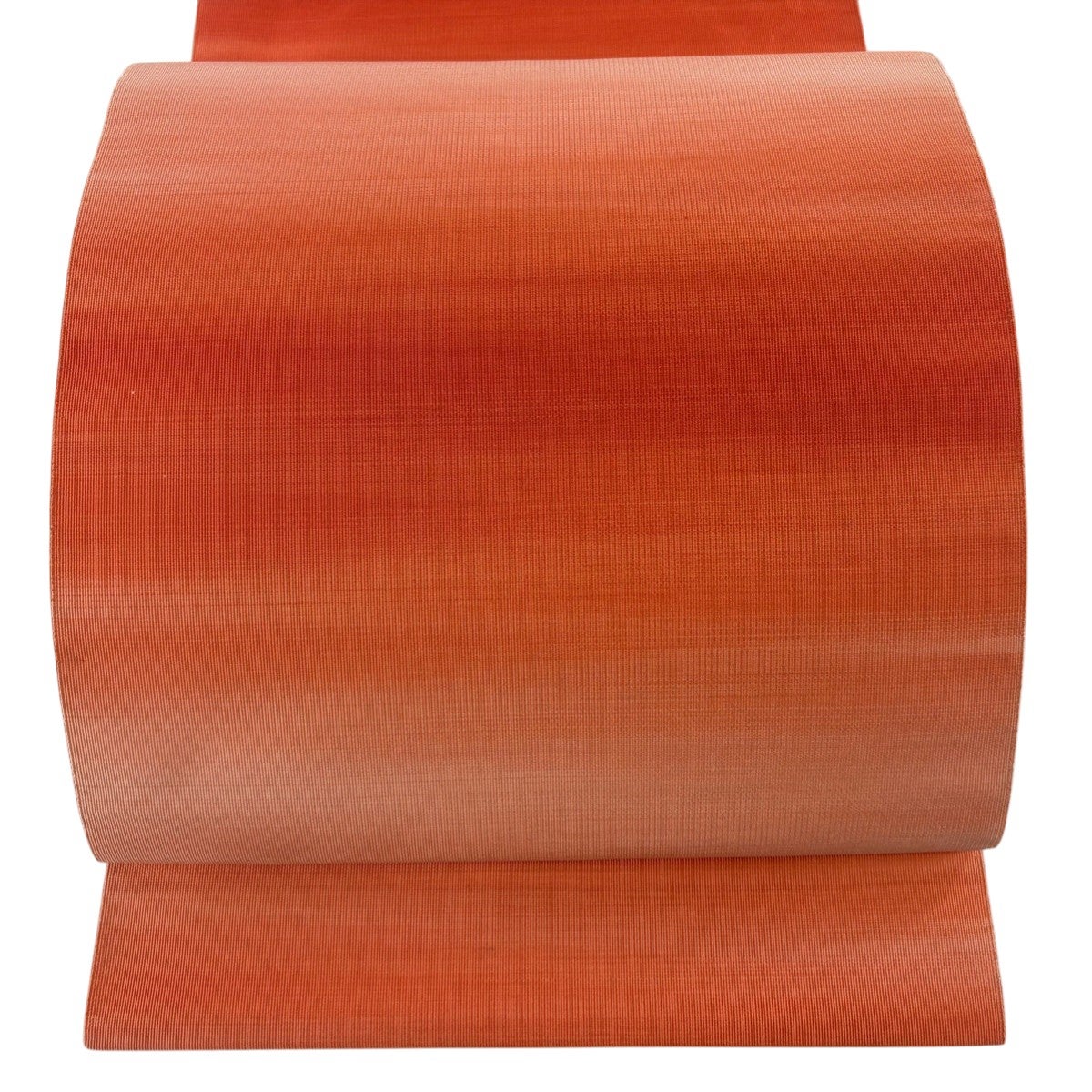 名古屋帯 秀品 草花 縮緬 ぼかし 赤茶 正絹