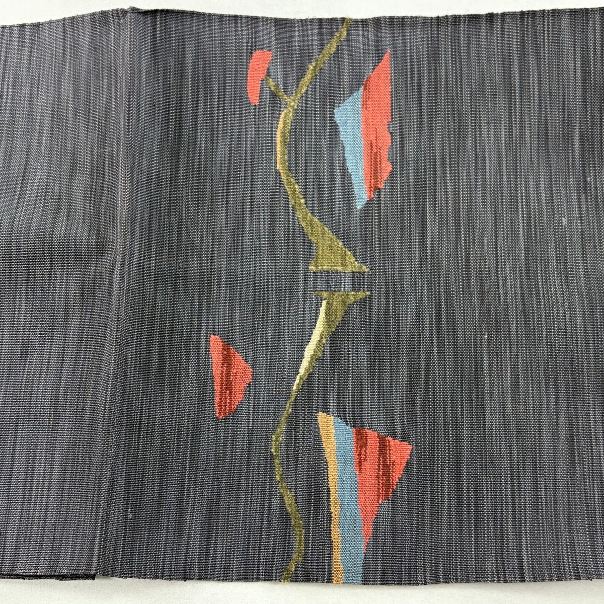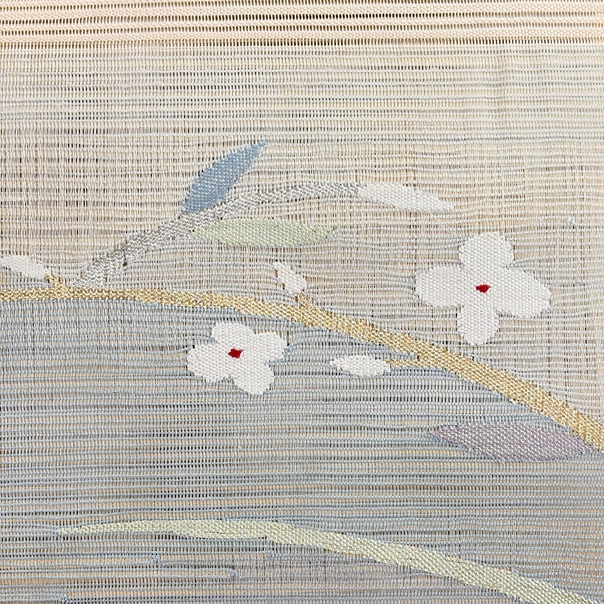 名古屋帯 秀品 落款あり 夏帯 夏紬地 萩 銀彩 灰色 正絹