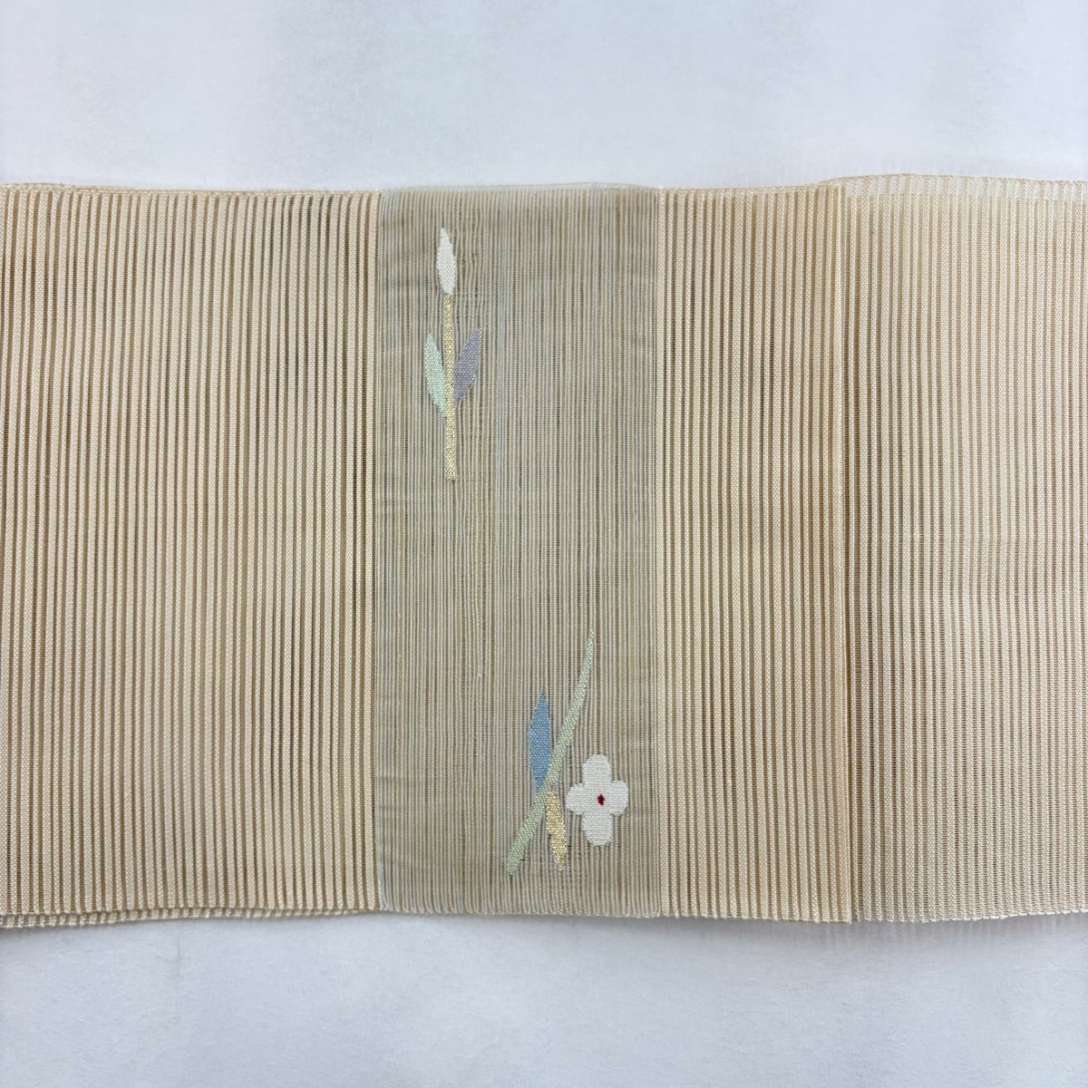 【美品】 名古屋帯 秀品 夏帯 八寸名古屋帯 草花 金銀糸 ベージュ 正絹