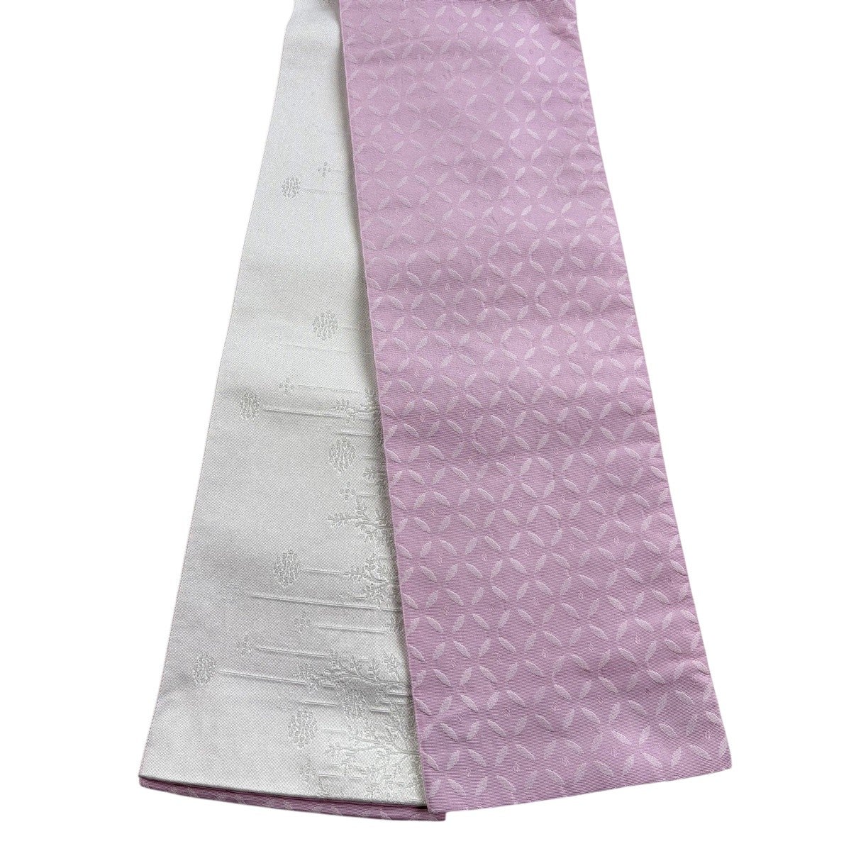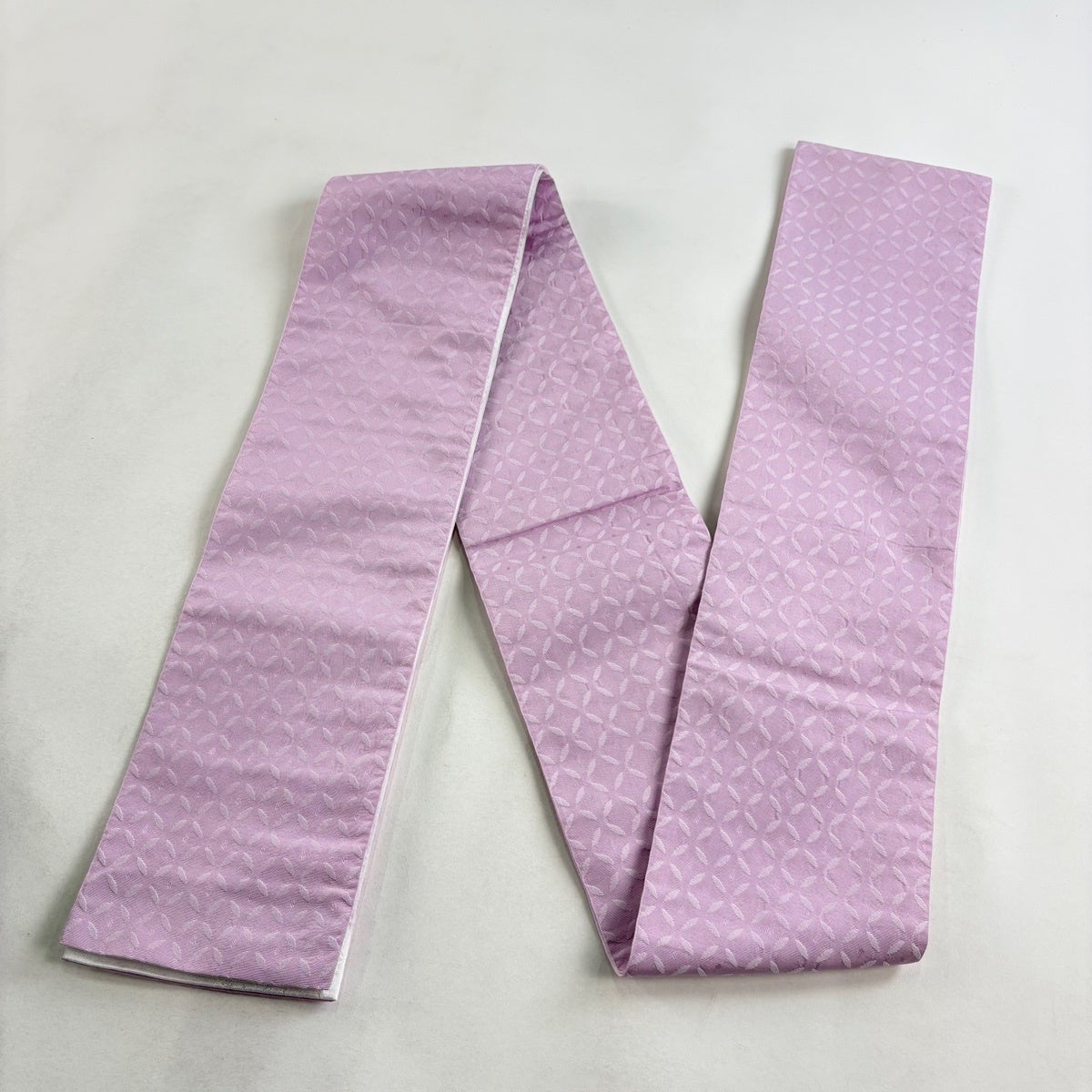 【美品】半幅帯 優品 七宝 薄ピンク 化繊
