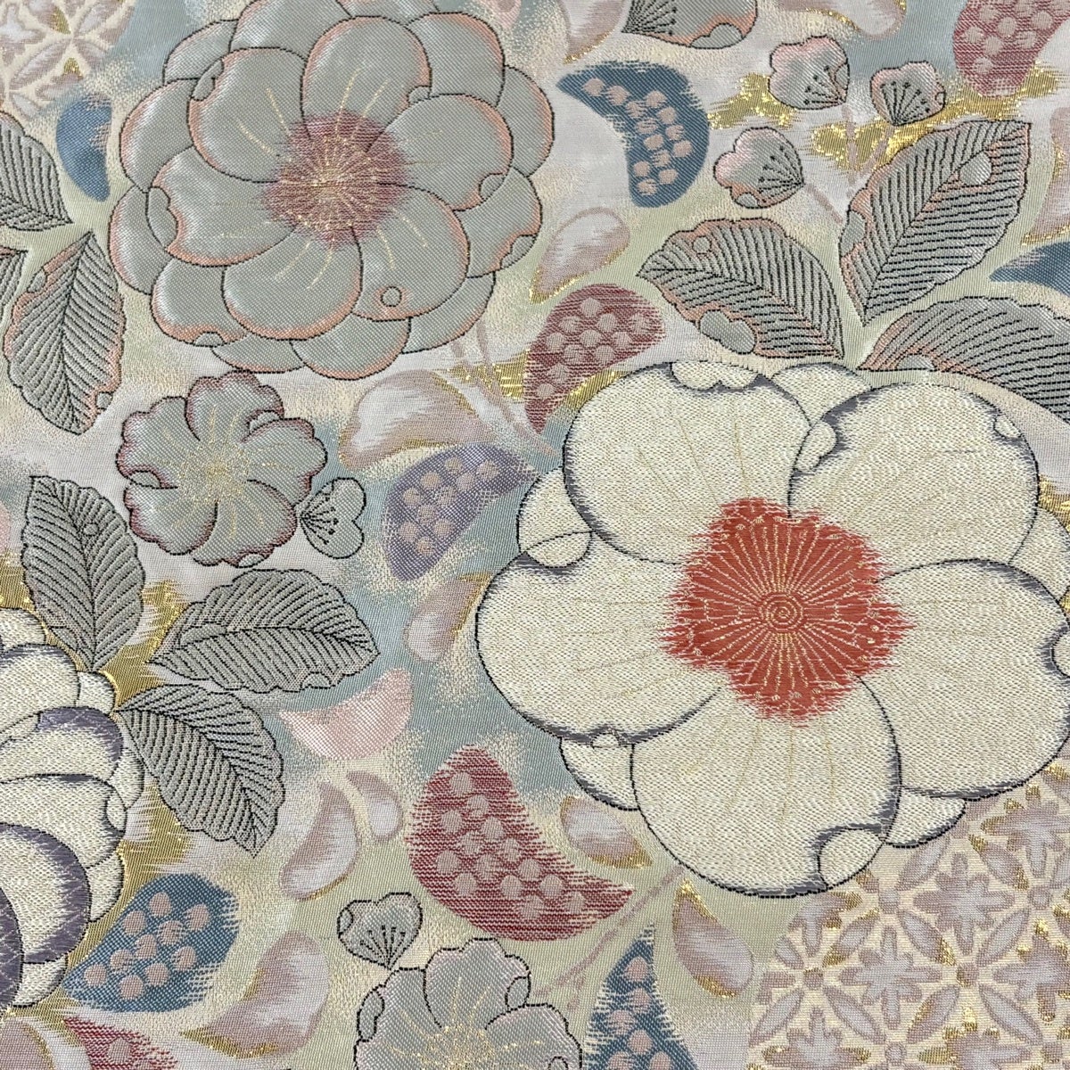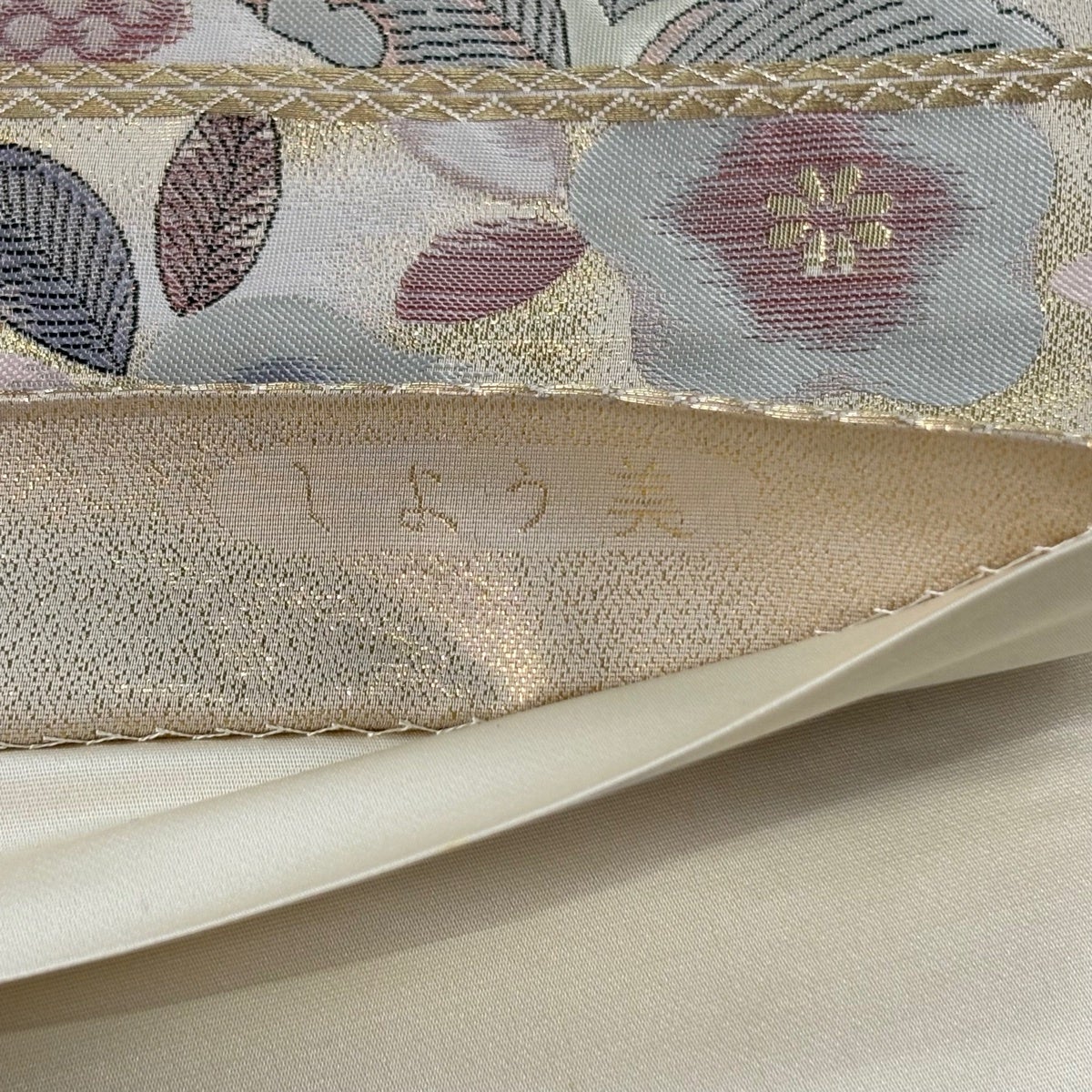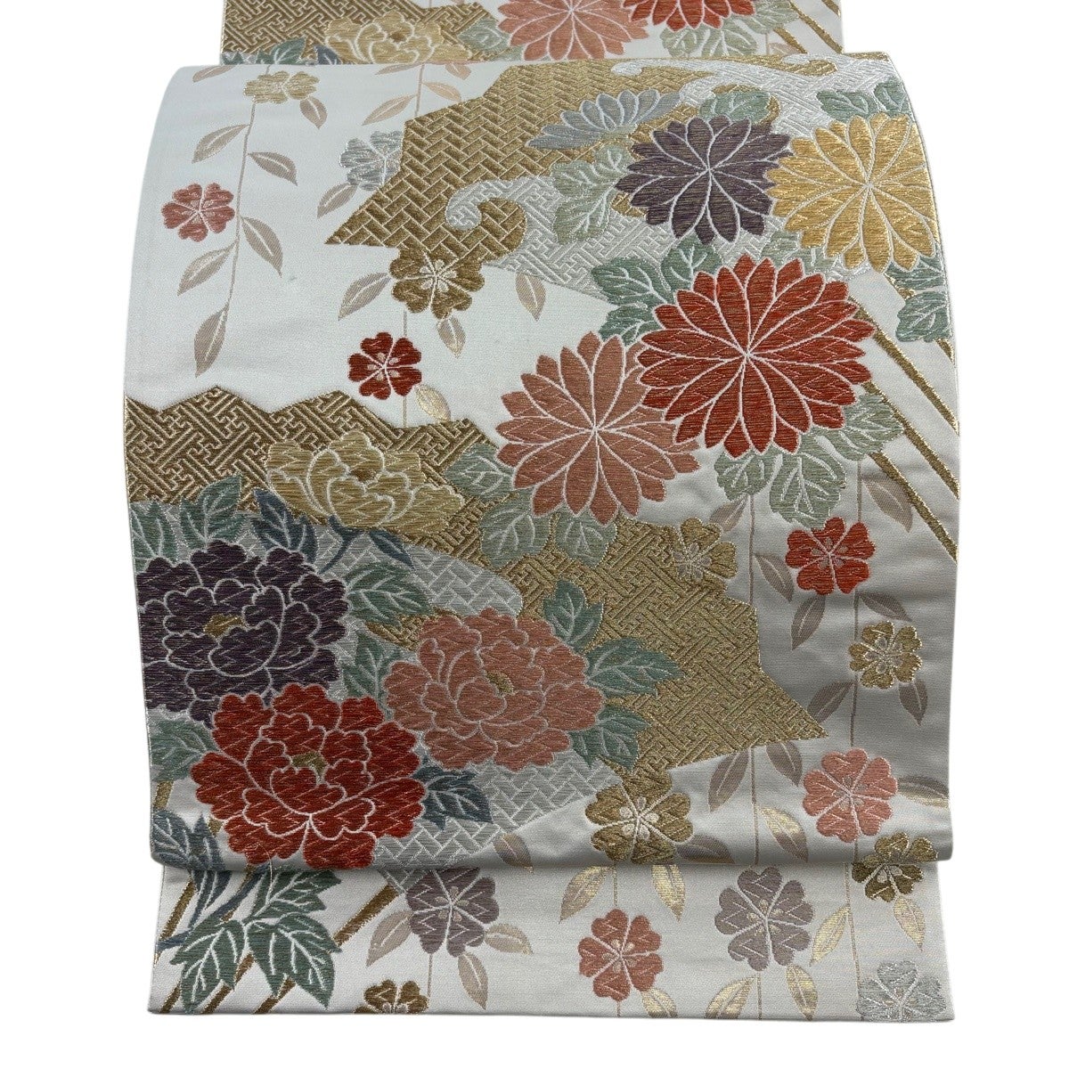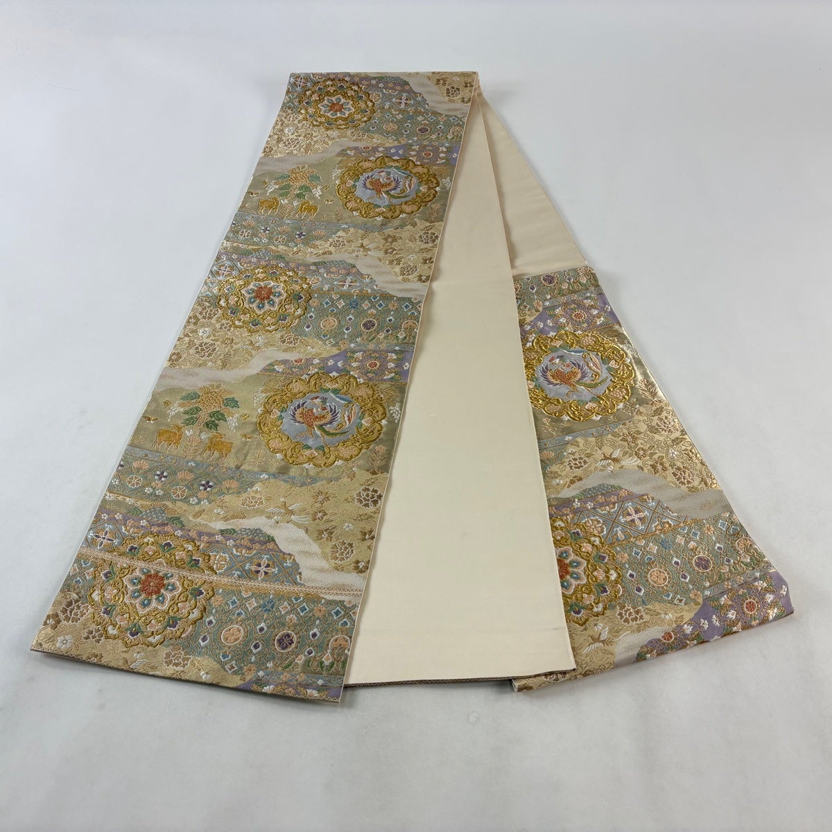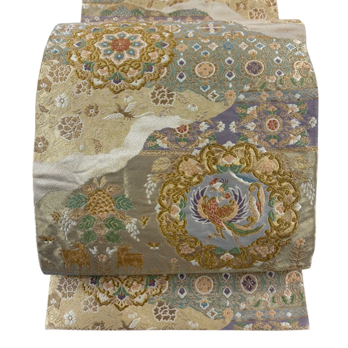 袋帯 秀品 菊 波頭 金糸 唐織 ベージュ 六通 正絹