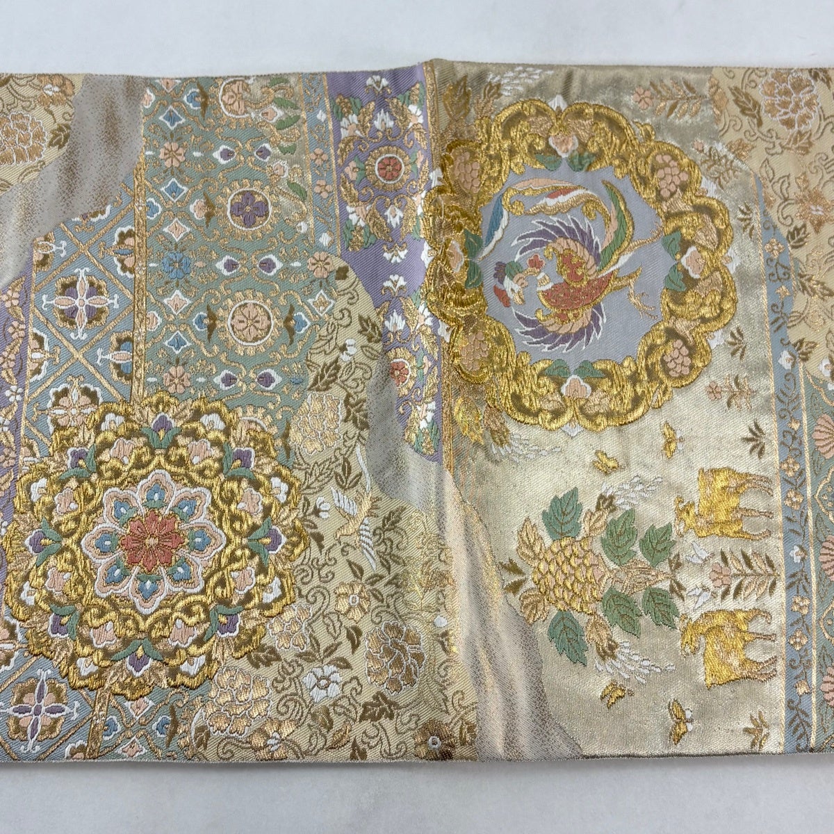 【美品】 袋帯 秀品 華文 鳳凰 金糸 箔 金色 六通 正絹