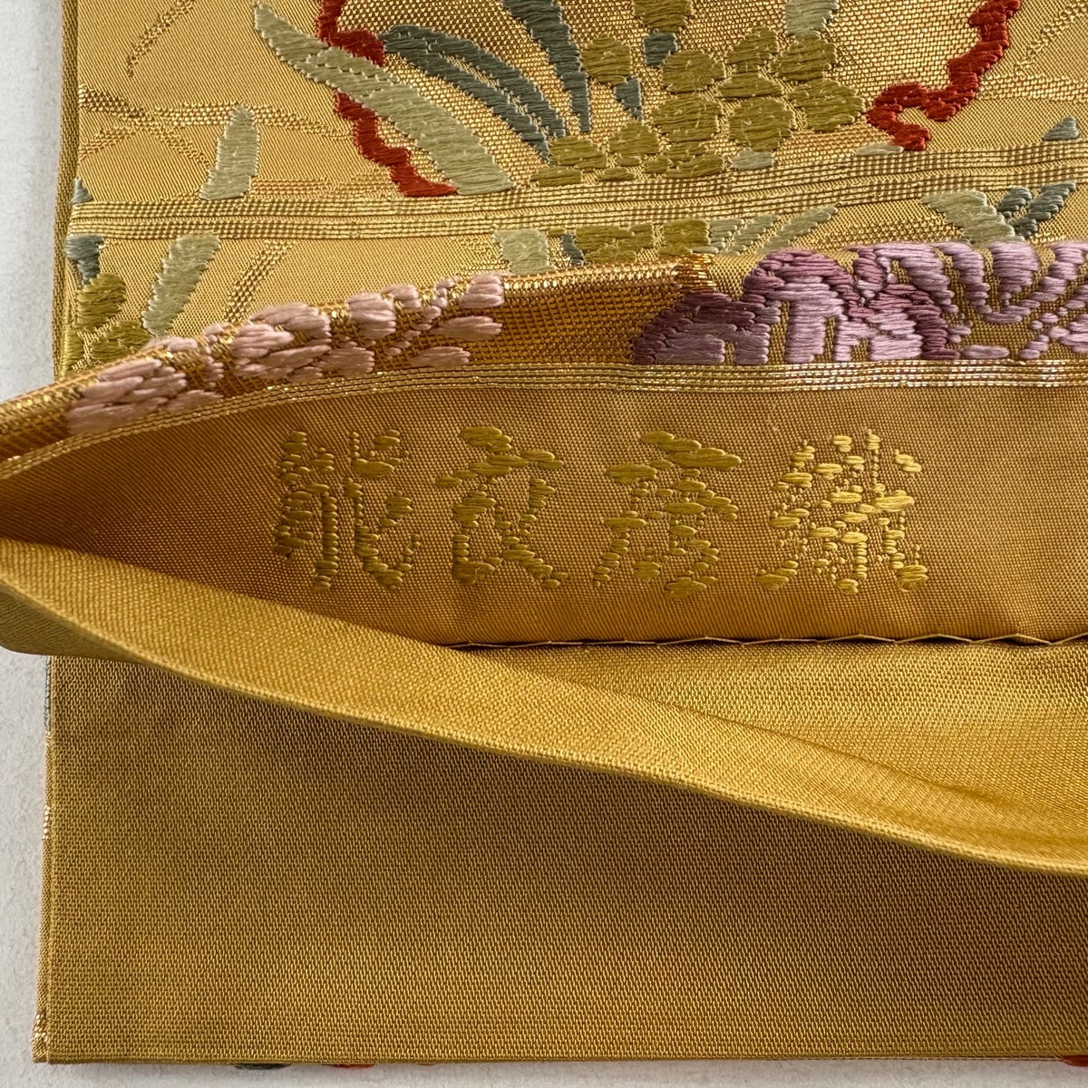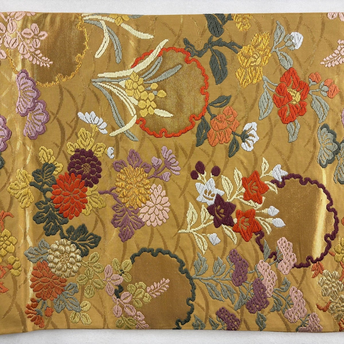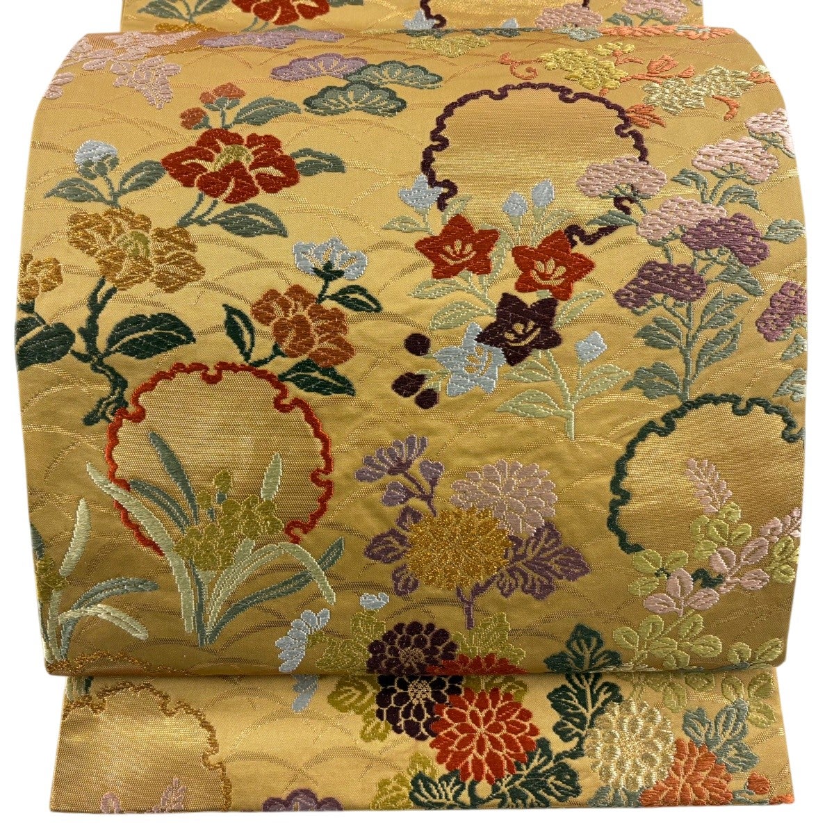 丸帯 秀品 花丸文 花鳥 箔 金糸 金色 全通 正絹
