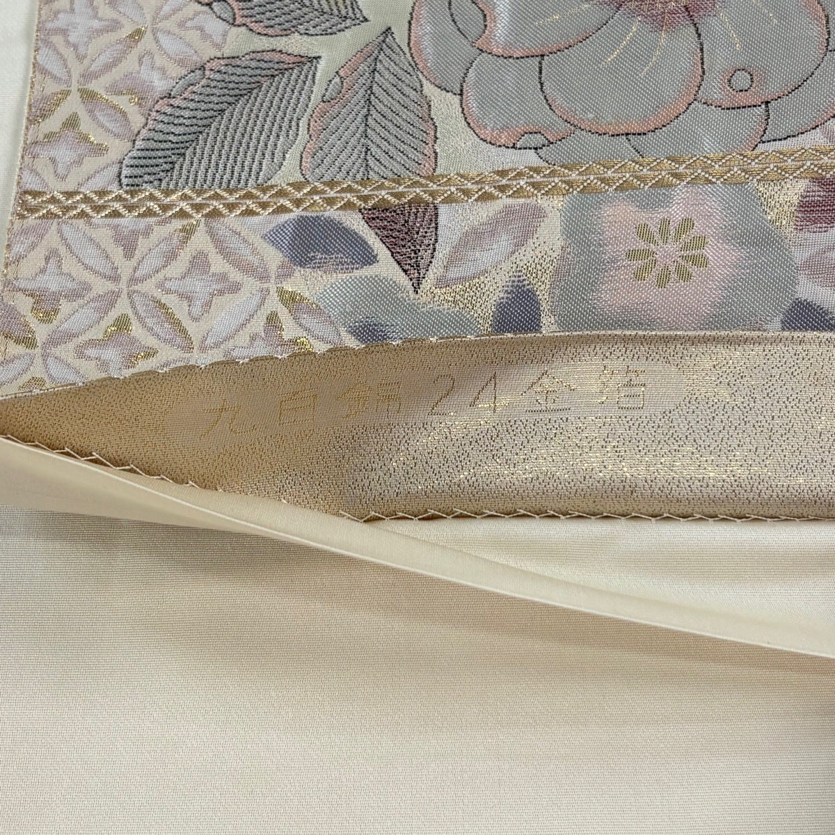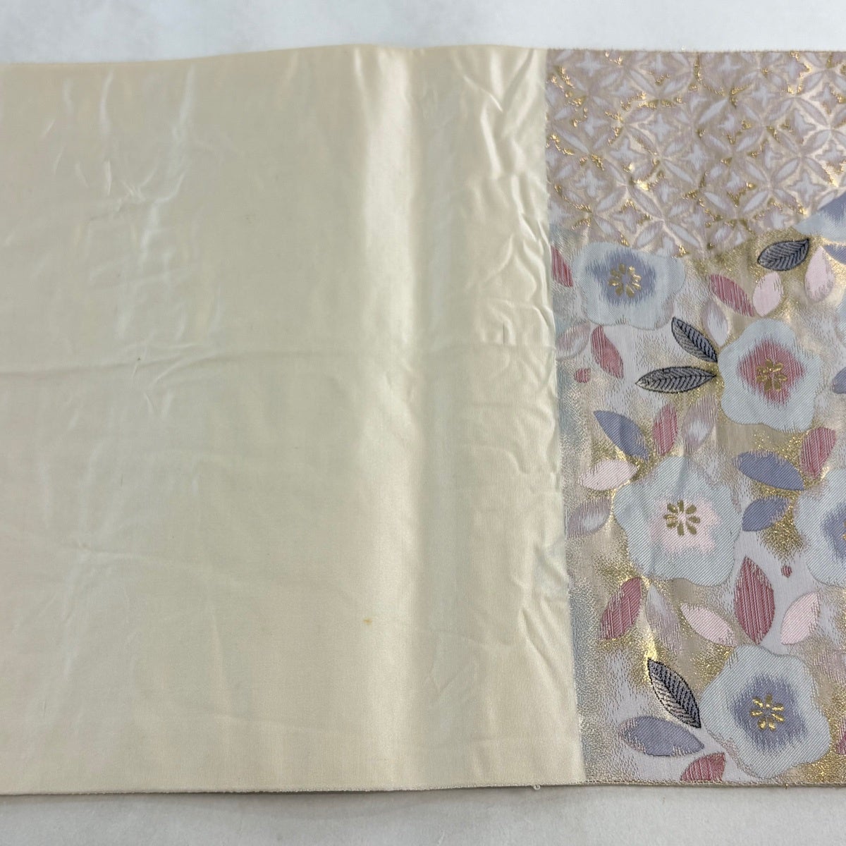 袋帯 秀品 関西仕立て 草花 七宝 箔 灰紫 六通 正絹